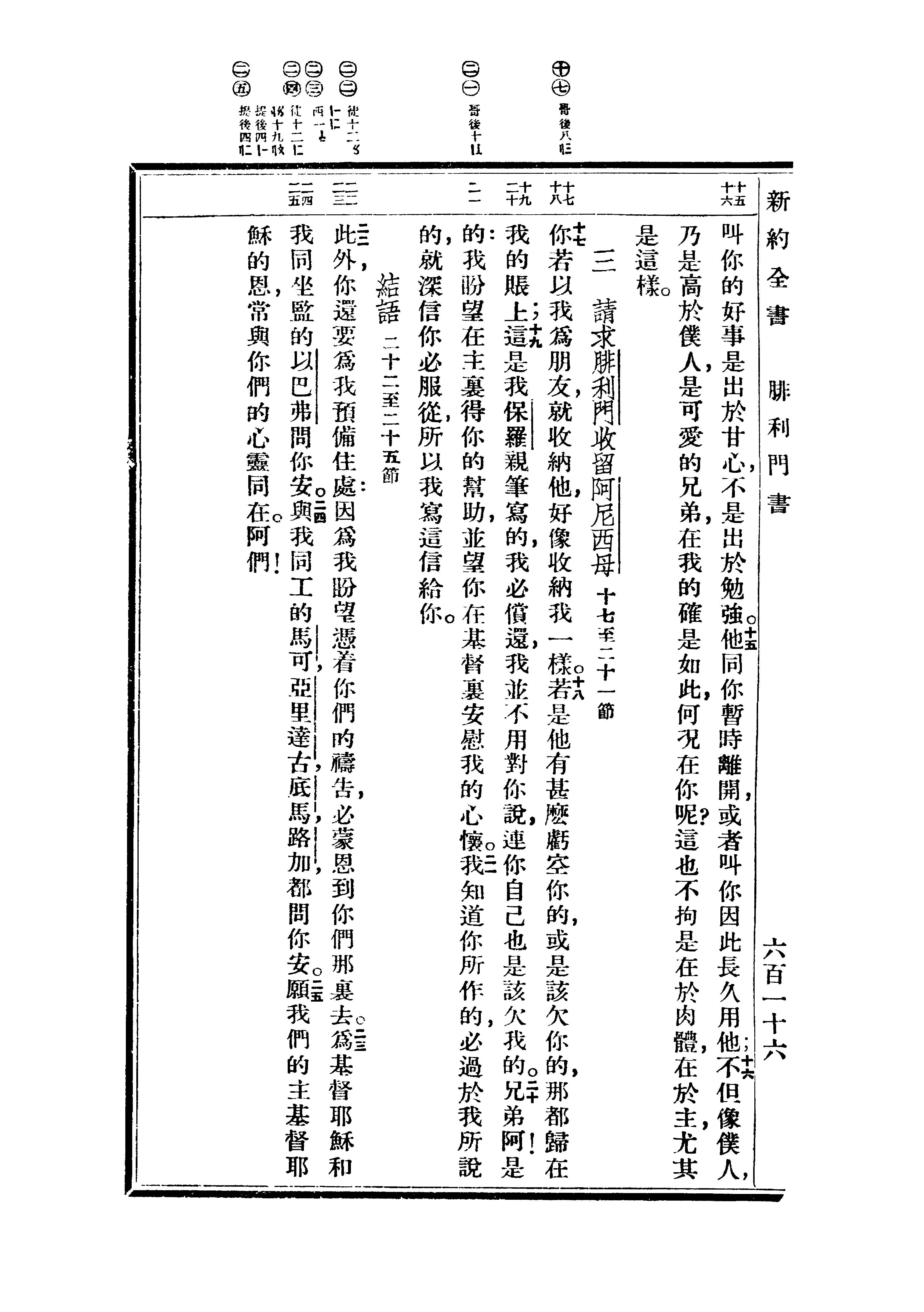 1936年重譯新約全書 腓利門書 1 章 15 節到 1 章 25 節
