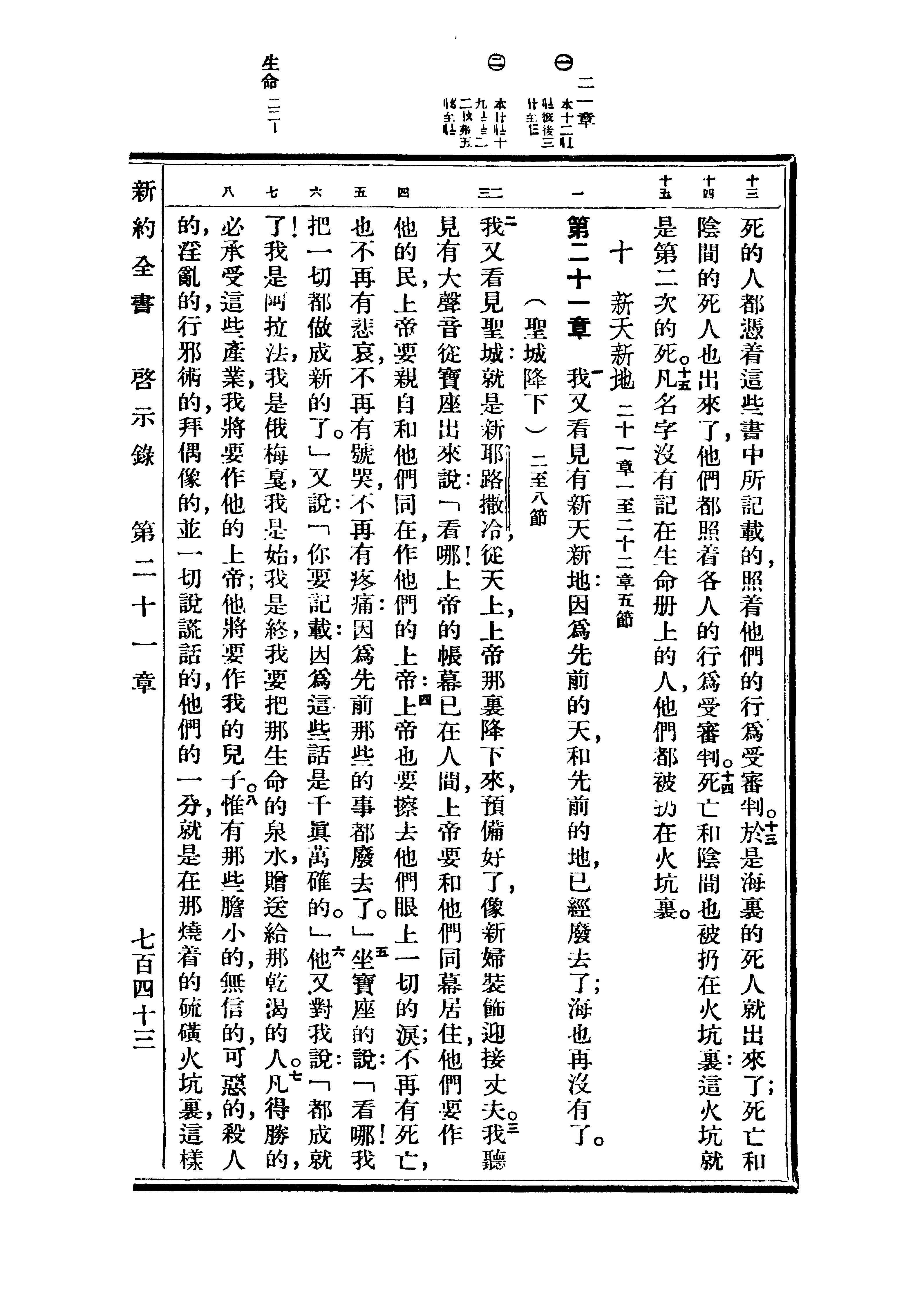 1936年重譯新約全書 啟示錄 20 章 13 節到 21 章 8 節