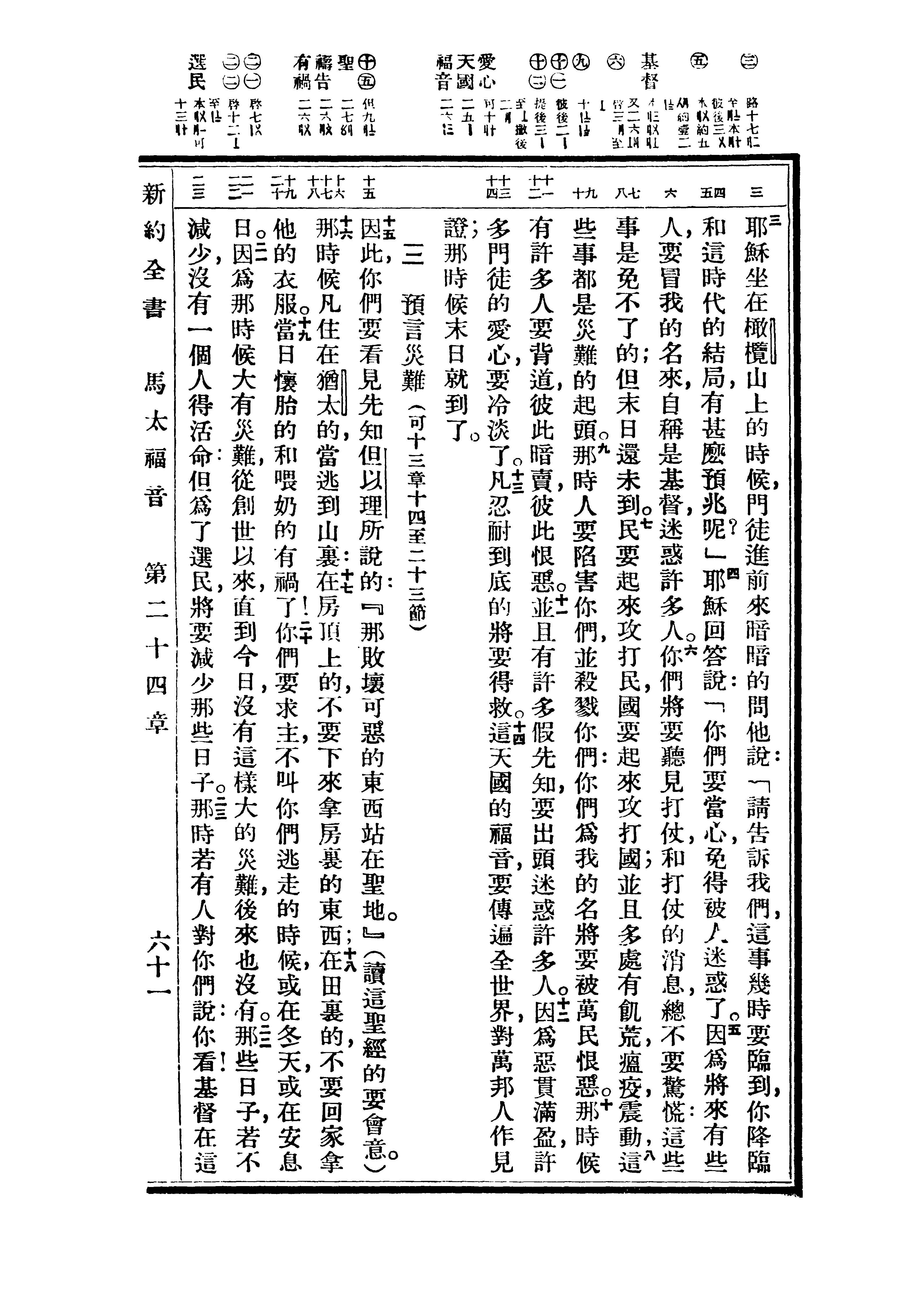 1936年重譯新約全書 馬太福音 24 章 3 節到 24 章 23 節