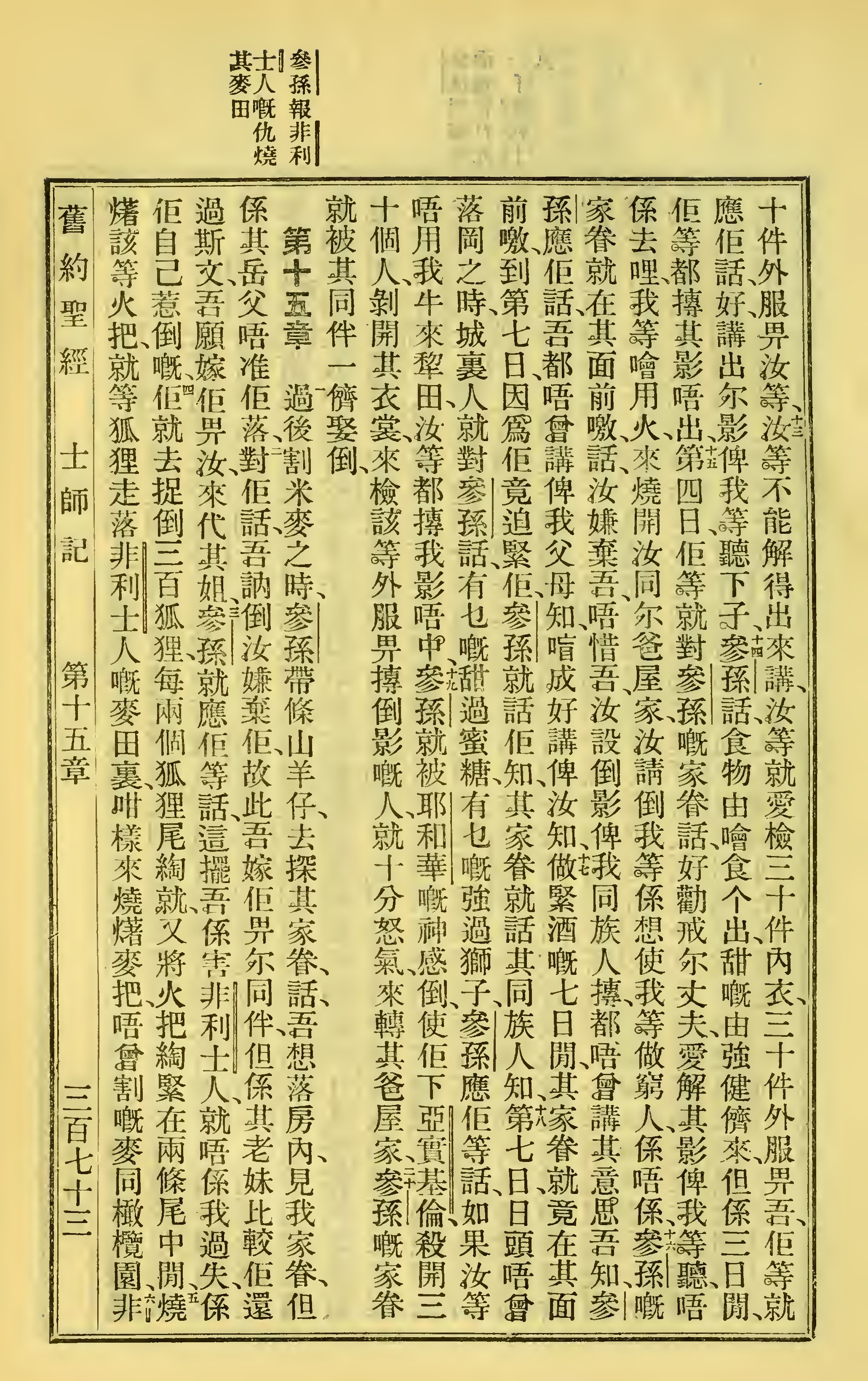 1923年聖經全書 士師記 14 章 13 節到 15 章 5 節