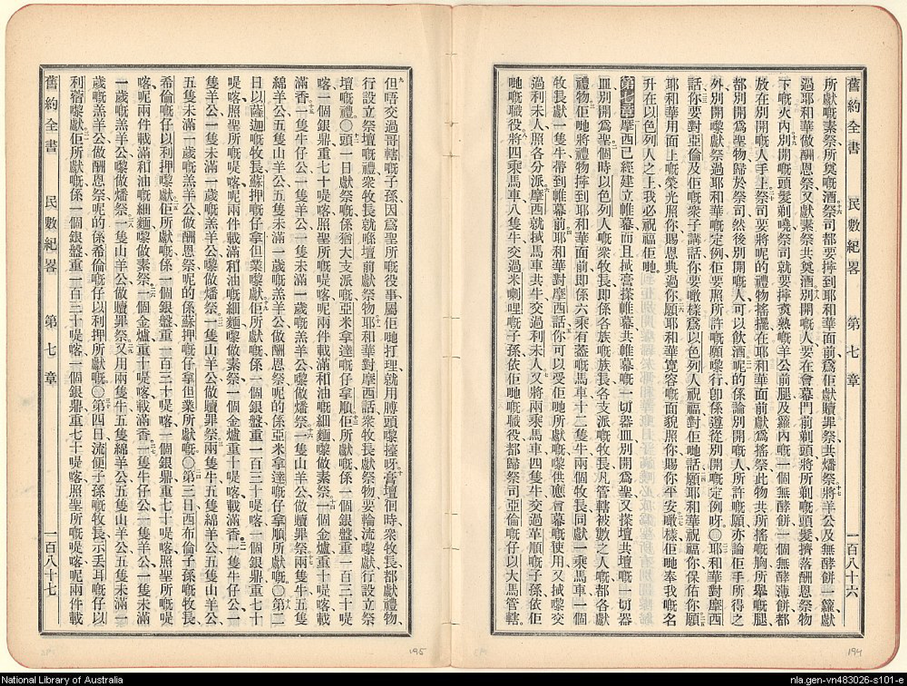 1907年新舊約全書 民數記 6 章 16 節到 7 章 31 節