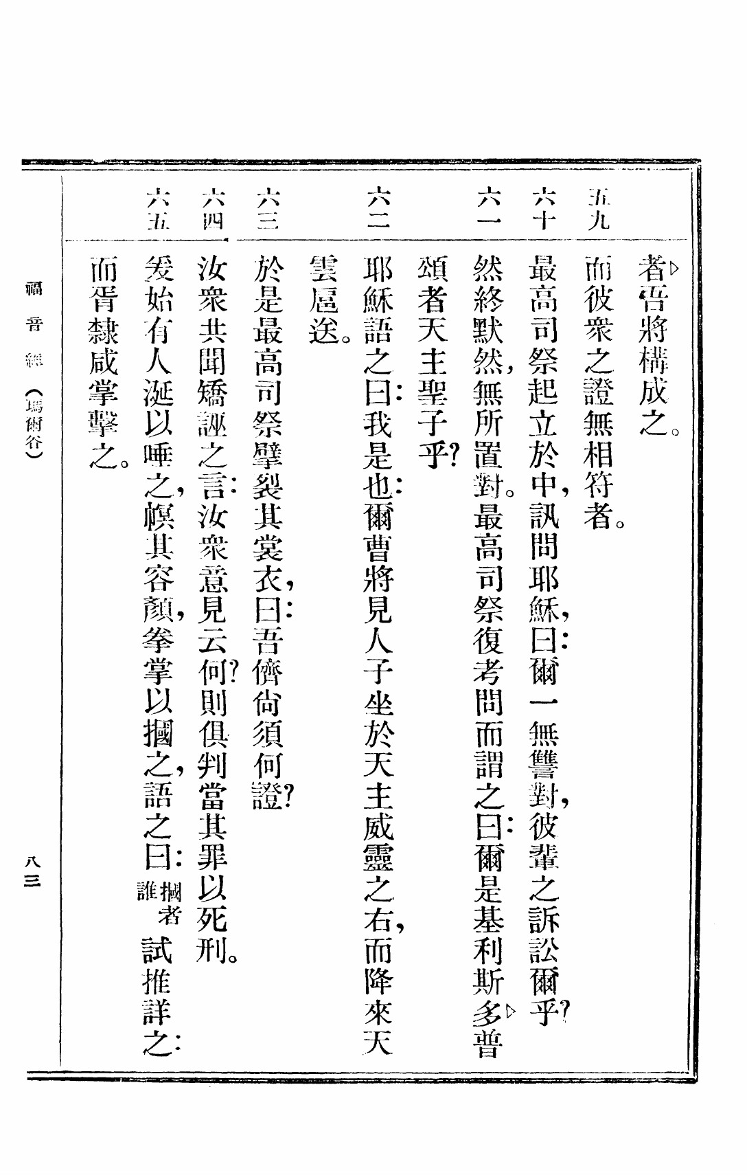 1949年救世福音 馬可福音 14 章 59 節到 14 章 65 節