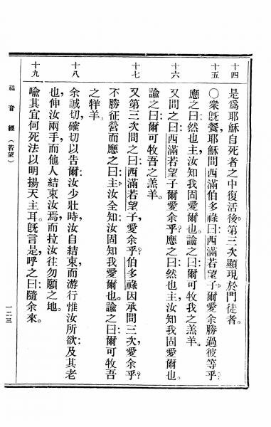1949年救世福音 約翰福音 21 章 14 節到 21 章 19 節