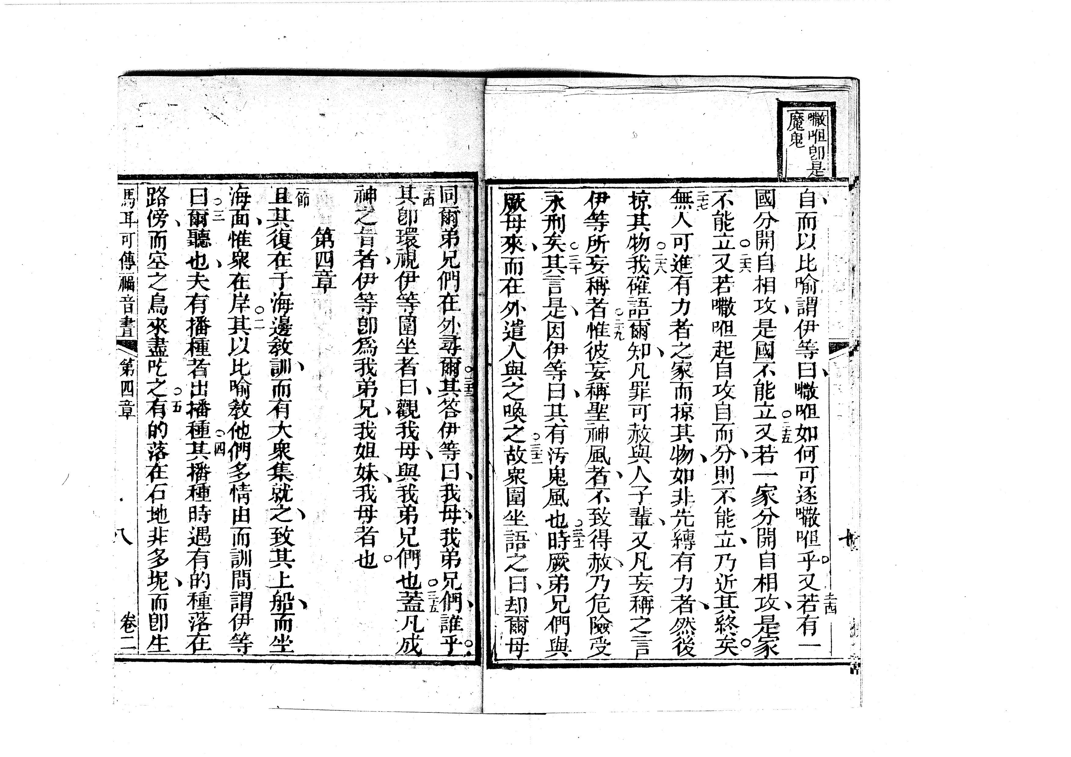 1823年耶穌基利士督我主救者新遺詔書-俱依本言譯出 馬可福音 3 章 23 節到 4 章 5 節