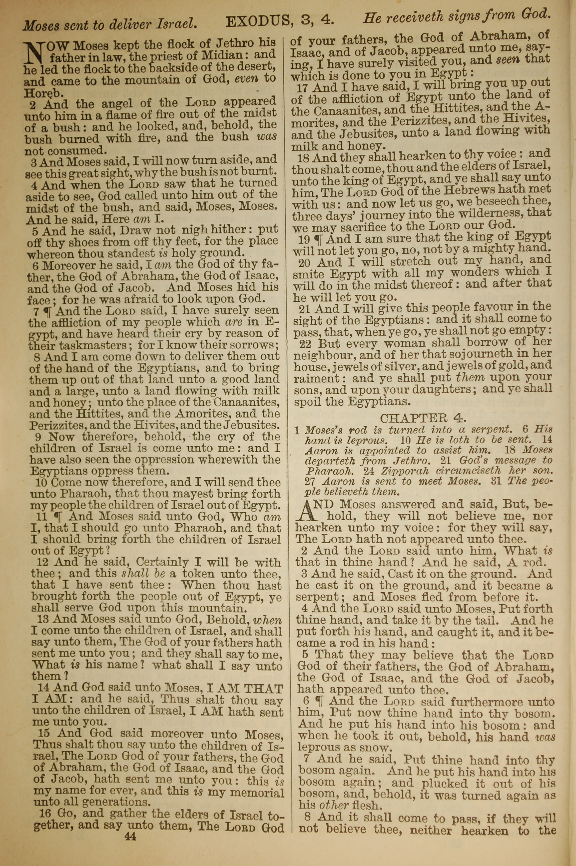 1886年英文聖經 出埃及記 3 章 1 節到 4 章 8 節