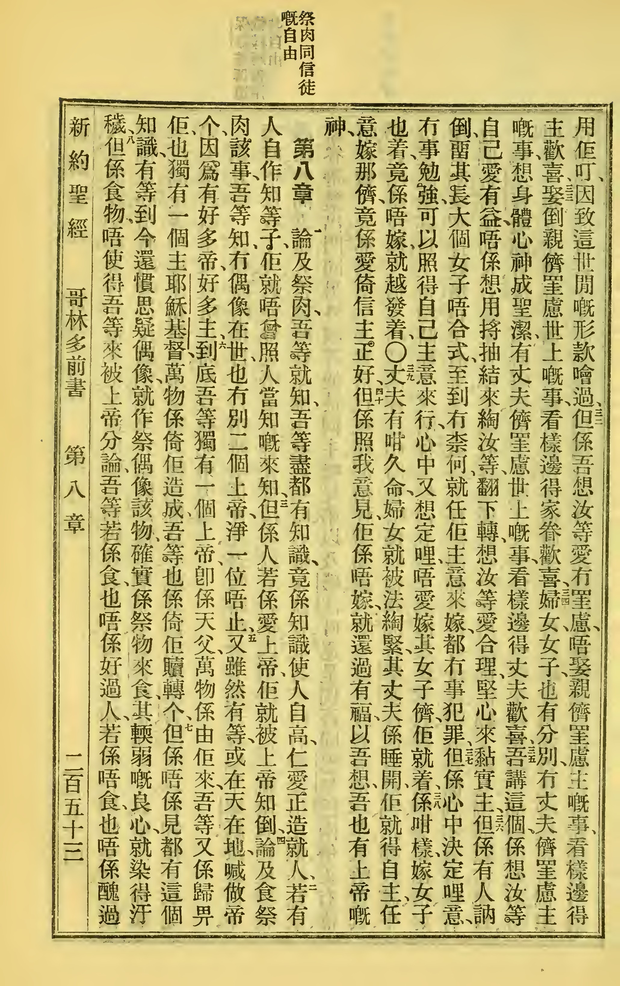 1923年客話新舊約聖經漢字版 哥林多前書 7 章 31 節到 8 章 8 節