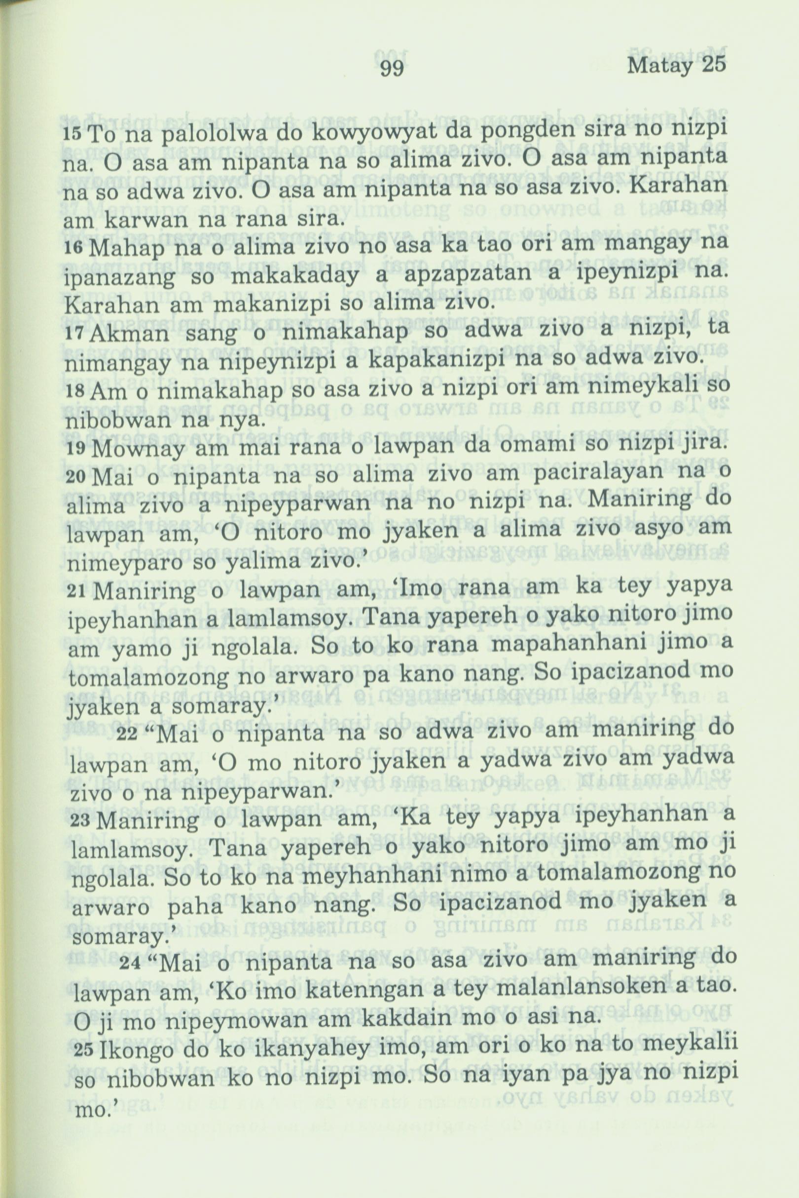 1994年新約全書 馬太福音 25 章 15 節到 25 章 25 節