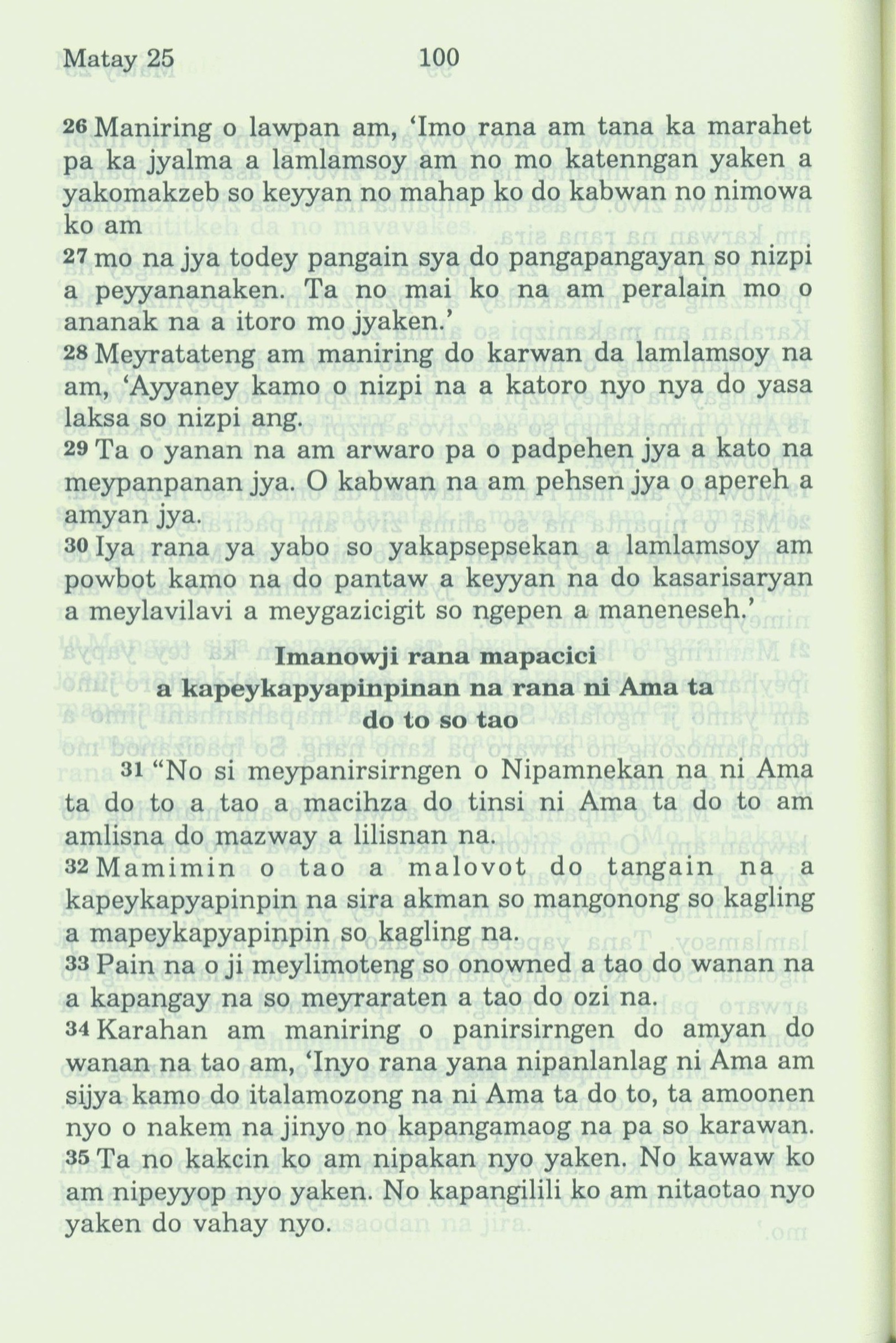 1994年新約全書 馬太福音 25 章 26 節到 25 章 35 節