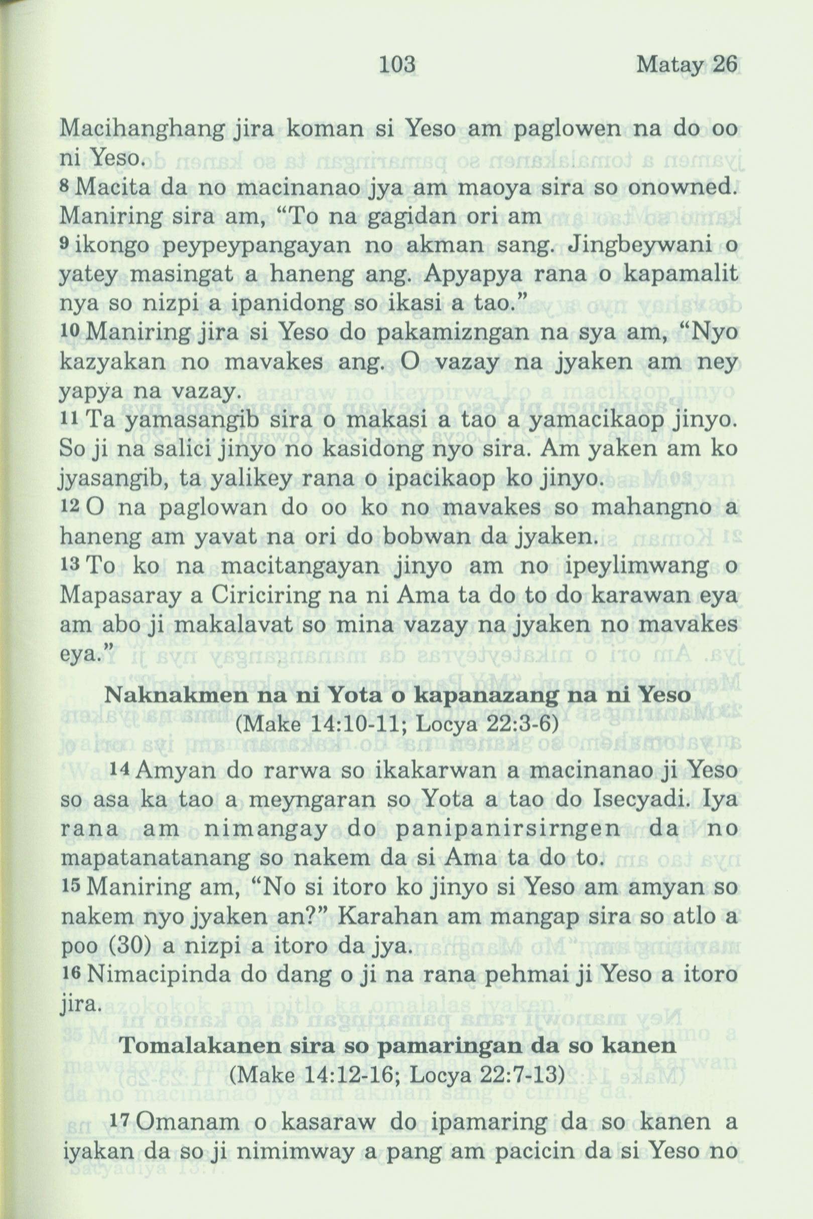 1994年新約全書 馬太福音 26 章 8 節到 26 章 17 節