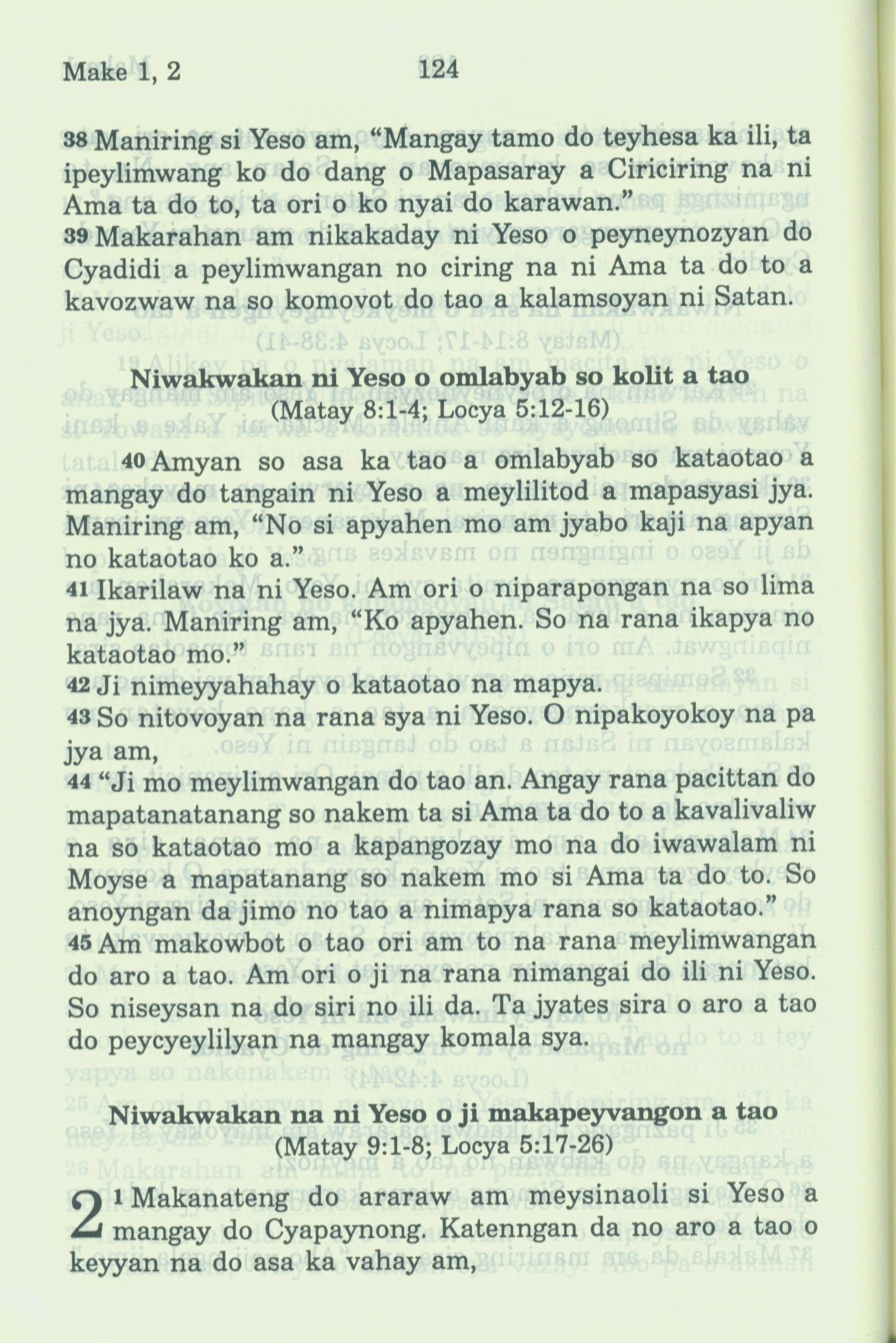 1994年新約全書 馬可福音 1 章 38 節到 2 章 1 節