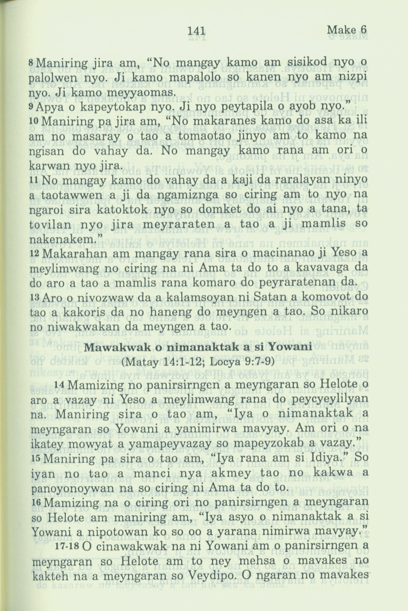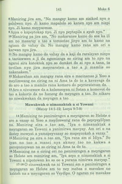 1994年新約全書 馬可福音 6 章 8 節到 6 章 18 節