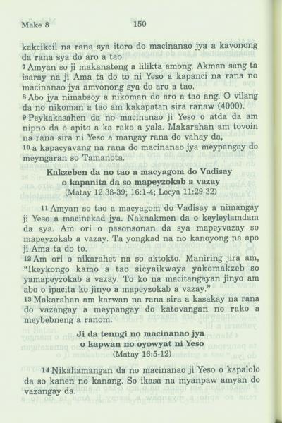 1994年新約全書 馬可福音 8 章 7 節到 8 章 14 節