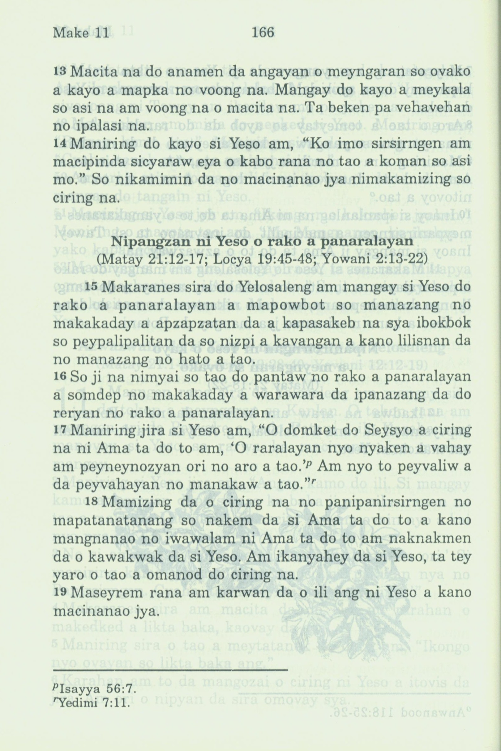 1994年新約全書 馬可福音 11 章 13 節到 11 章 19 節