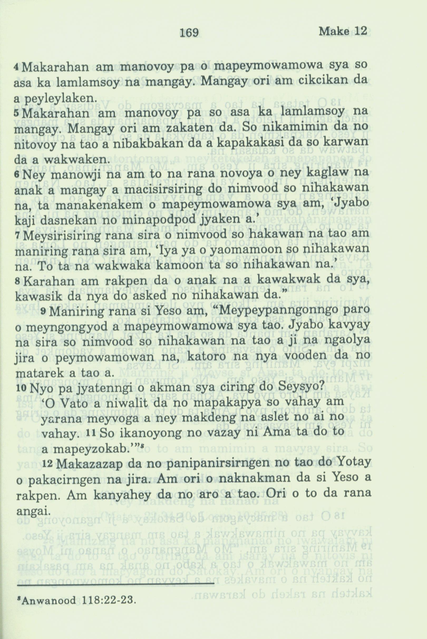 1994年新約全書 馬可福音 12 章 4 節到 12 章 12 節