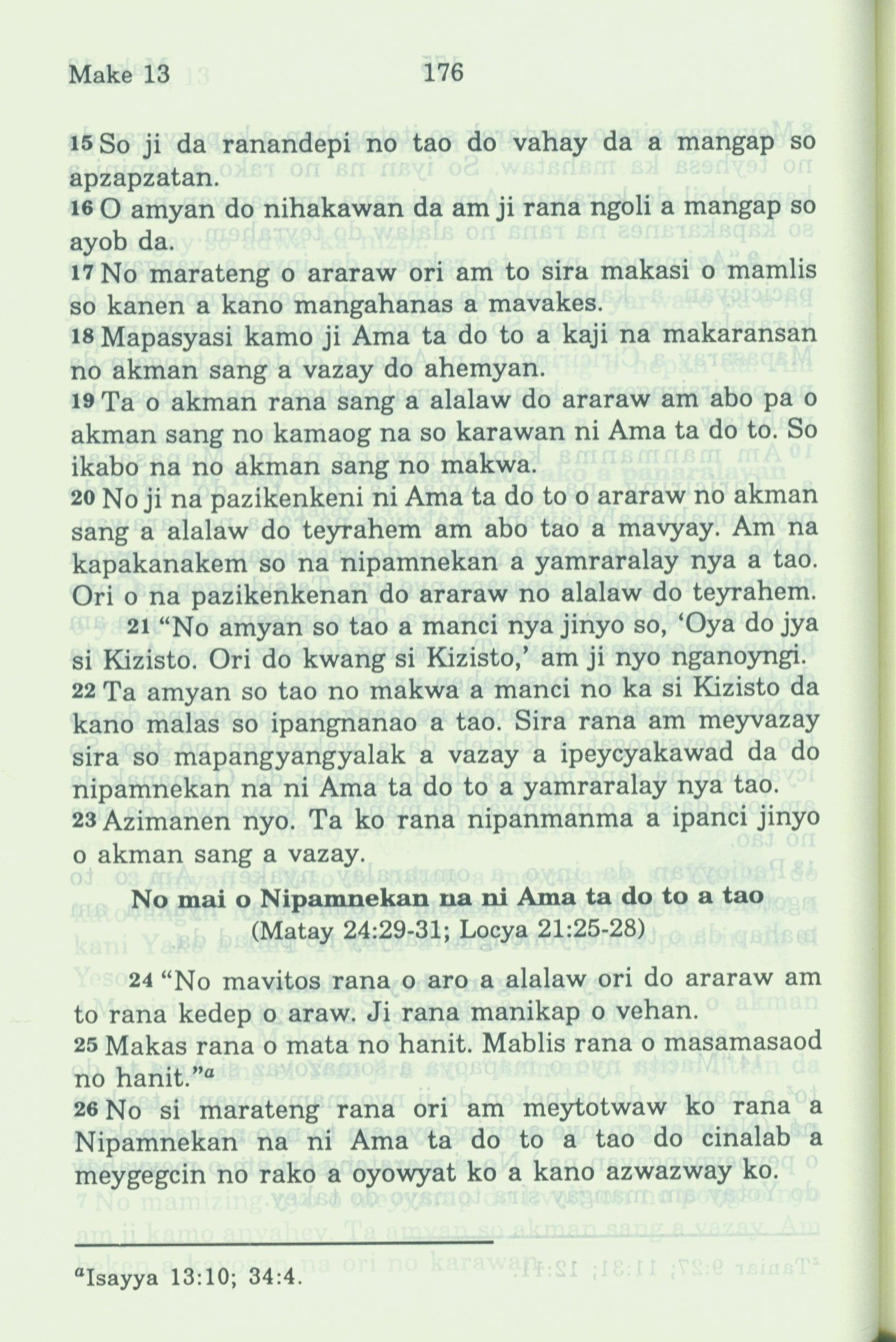 1994年新約全書 馬可福音 13 章 15 節到 13 章 26 節