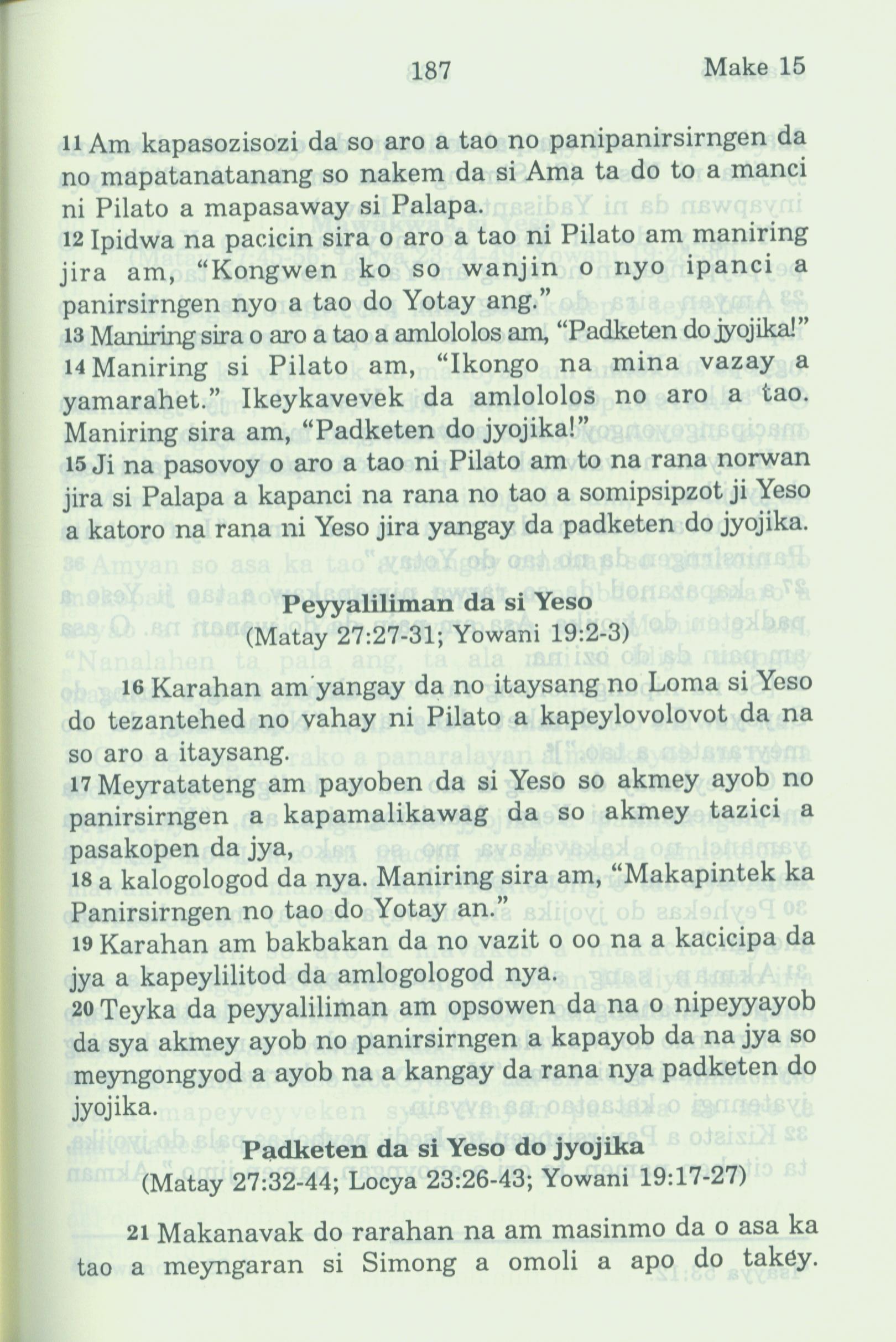1994年新約全書 馬可福音 15 章 11 節到 15 章 21 節