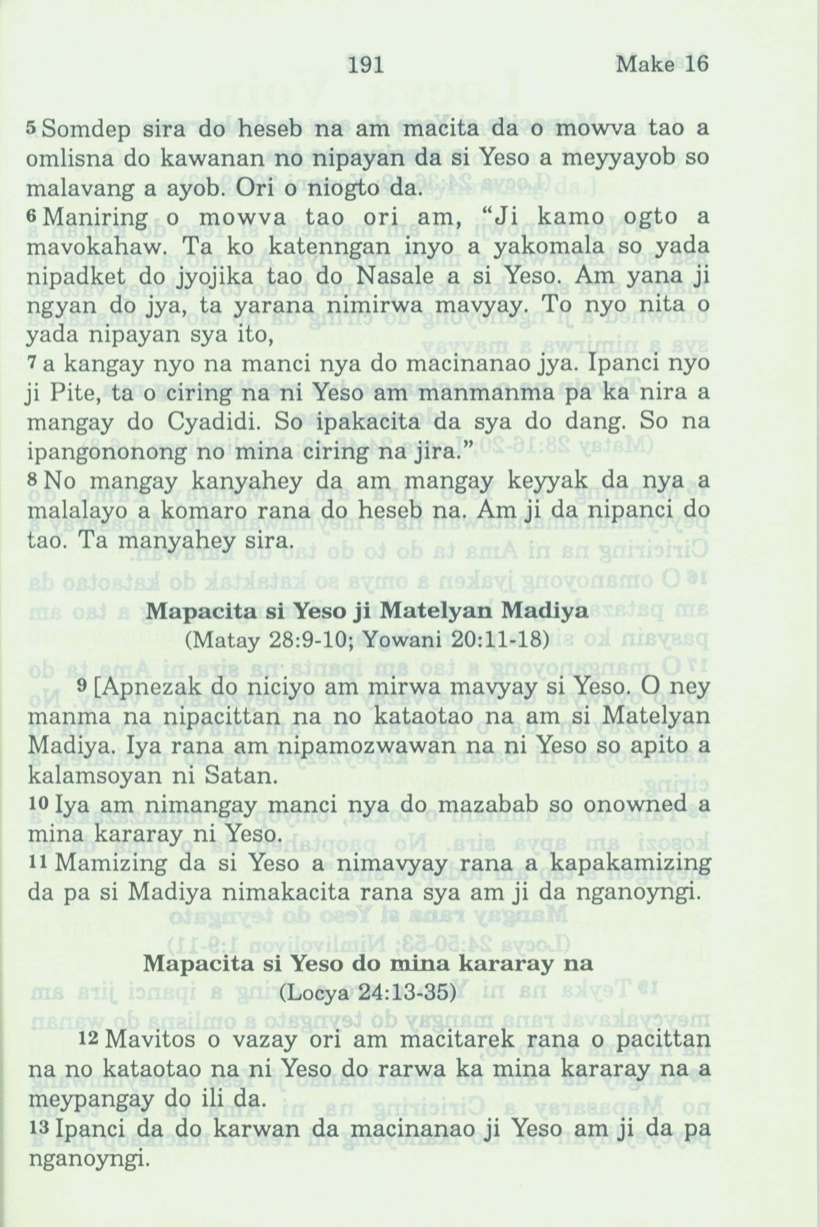 1994年新約全書 馬可福音 16 章 5 節到 16 章 13 節