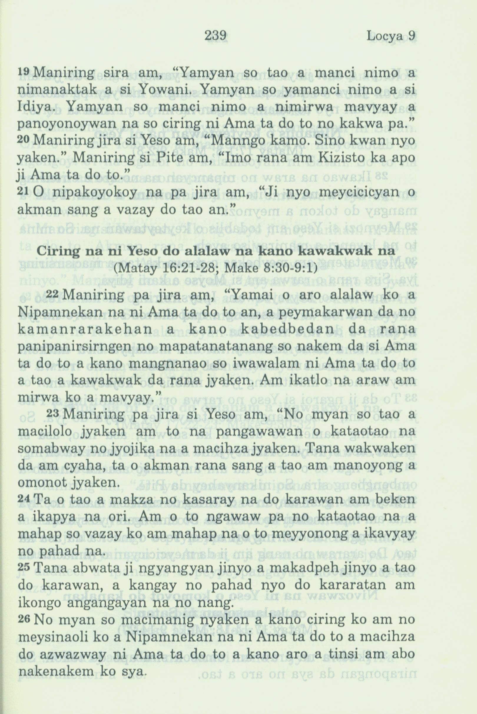 1994年新約全書 路加福音 9 章 19 節到 9 章 26 節