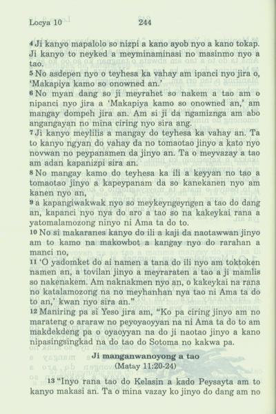 1994年新約全書 路加福音 10 章 4 節到 10 章 13 節