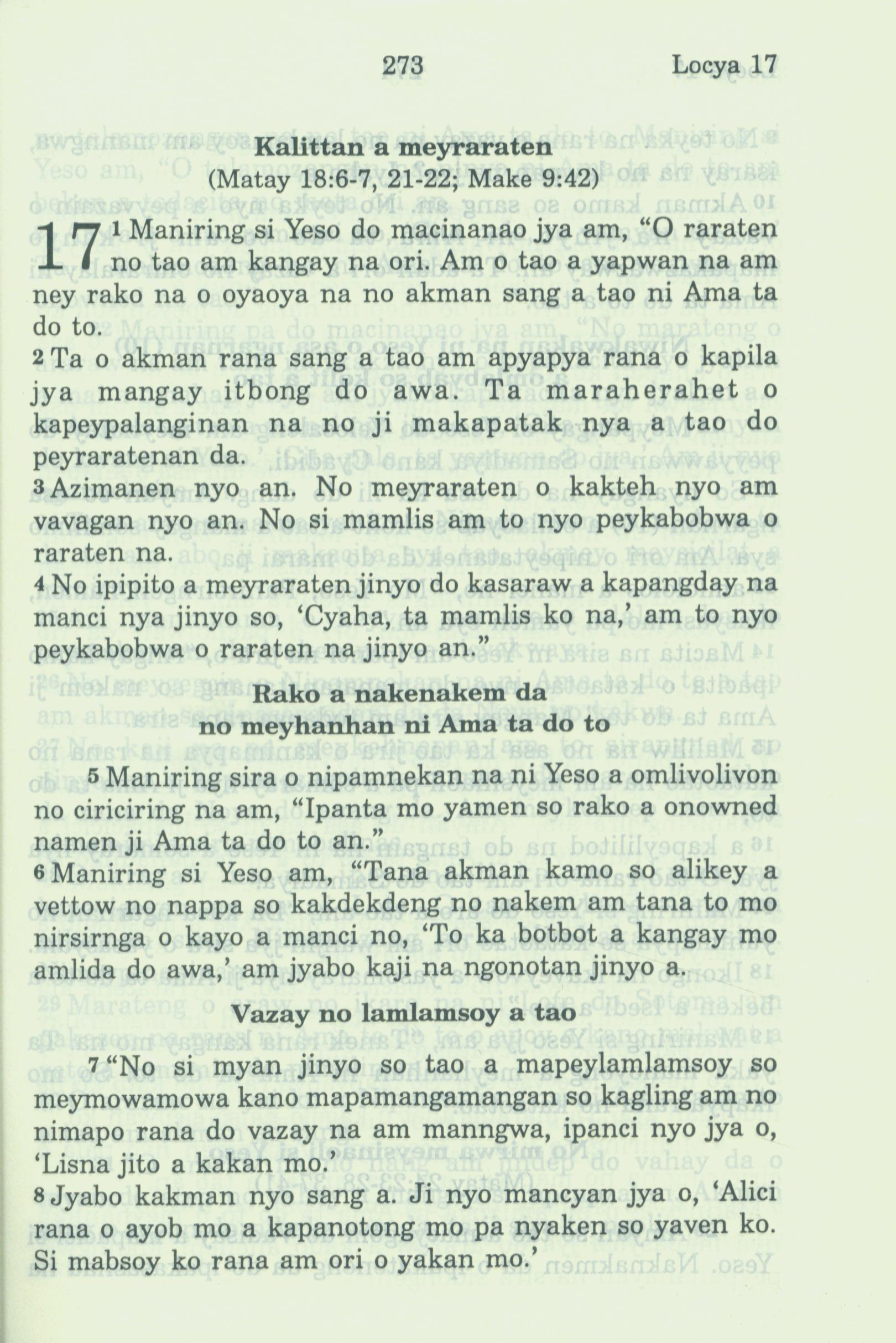 1994年新約全書 路加福音 17 章 1 節到 17 章 8 節
