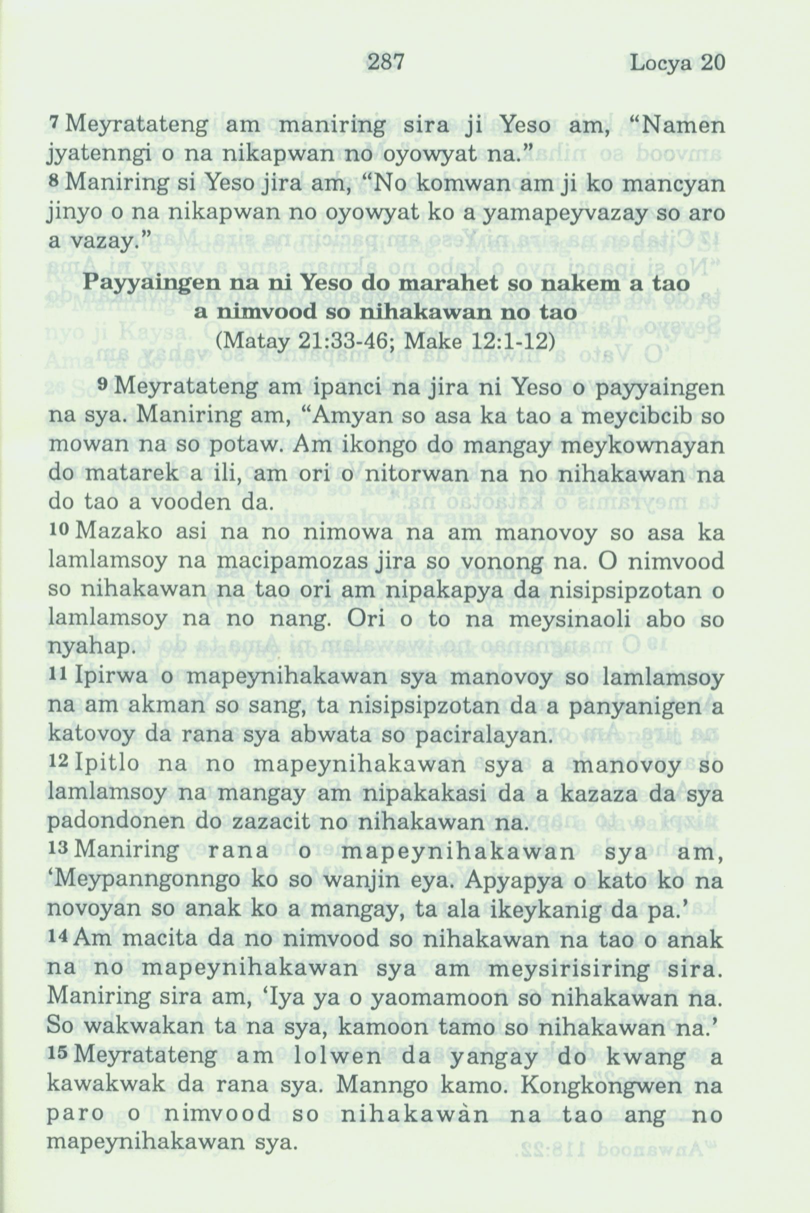 1994年新約全書 路加福音 20 章 7 節到 20 章 15 節