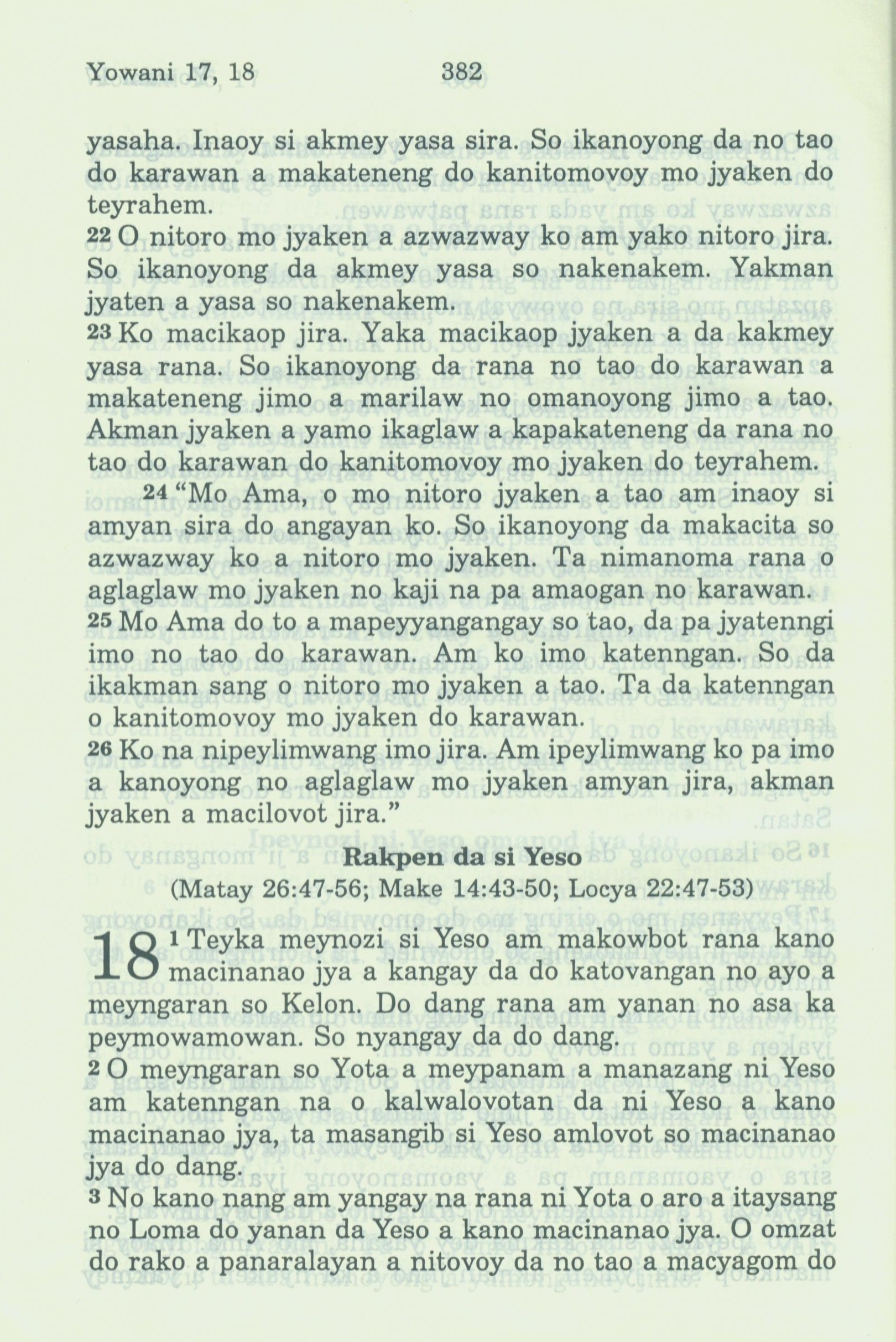 1994年新約全書 約翰福音 17 章 22 節到 18 章 3 節