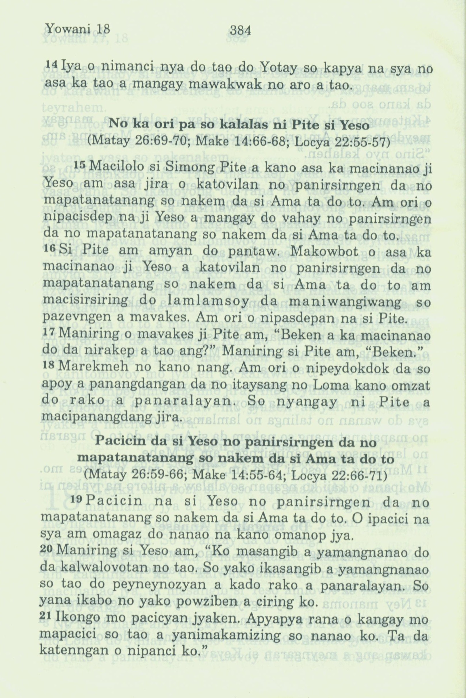 1994年新約全書 約翰福音 18 章 14 節到 18 章 21 節