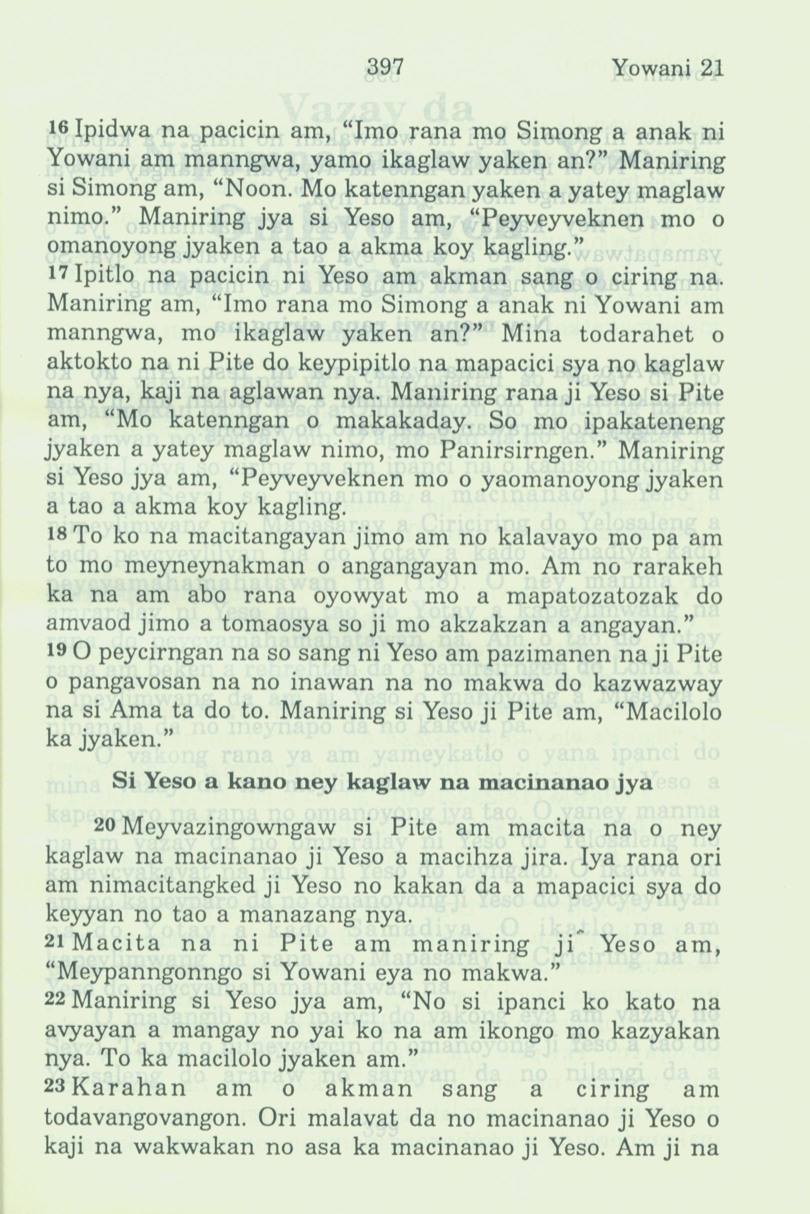 1994年新約全書 約翰福音 21 章 16 節到 21 章 23 節