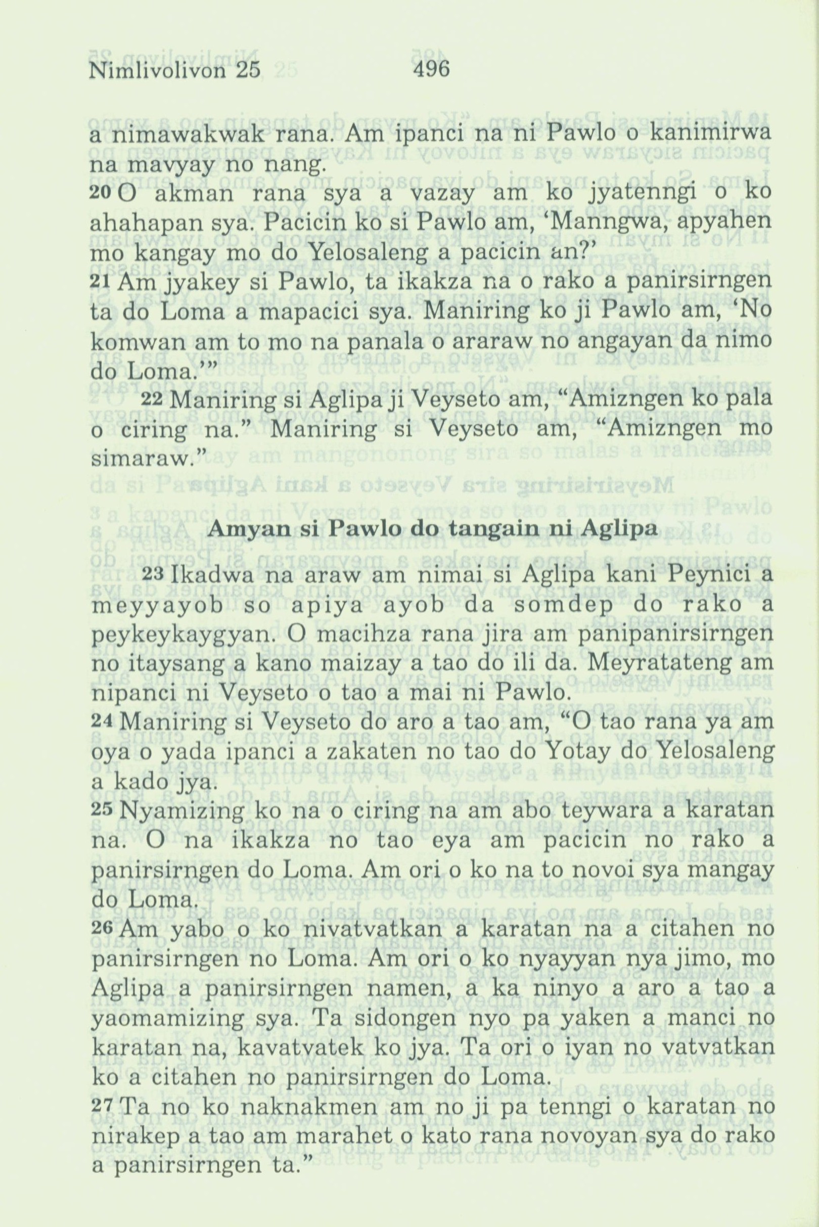 1994年新約全書 使徒行傳 25 章 20 節到 25 章 27 節