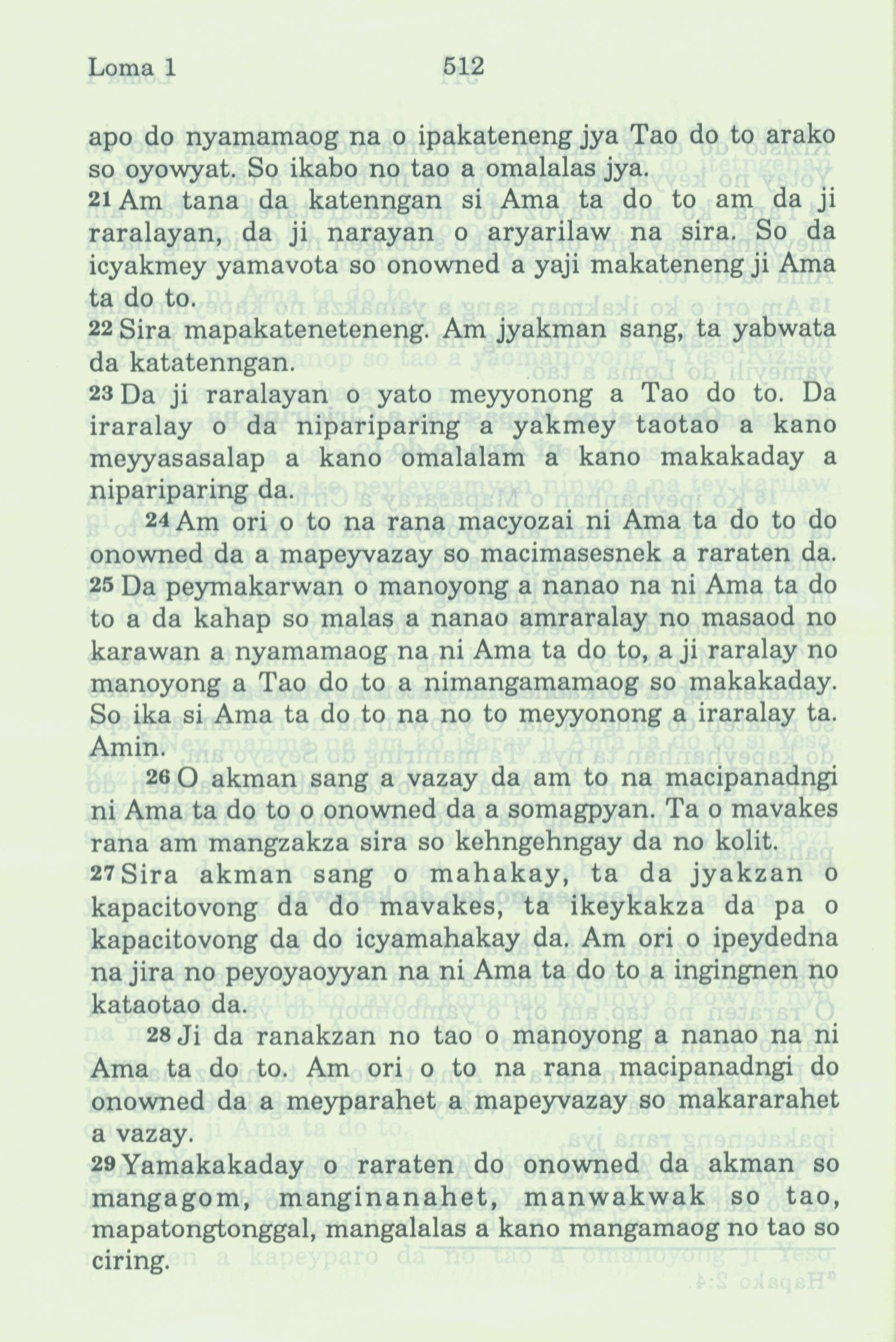 1994年新約全書 羅馬書 1 章 21 節到 1 章 29 節