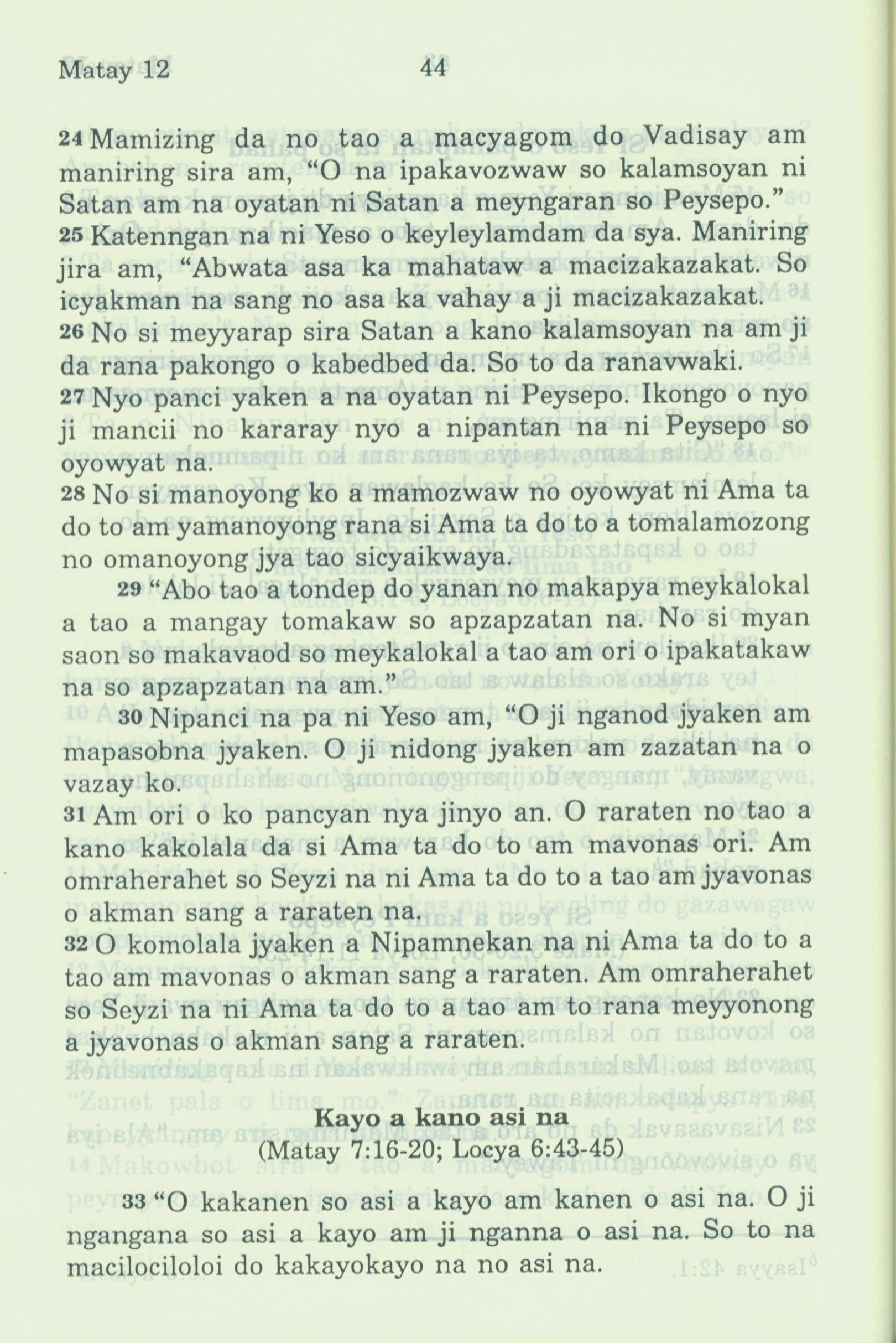 1994年新約全書 馬太福音 12 章 24 節到 12 章 33 節