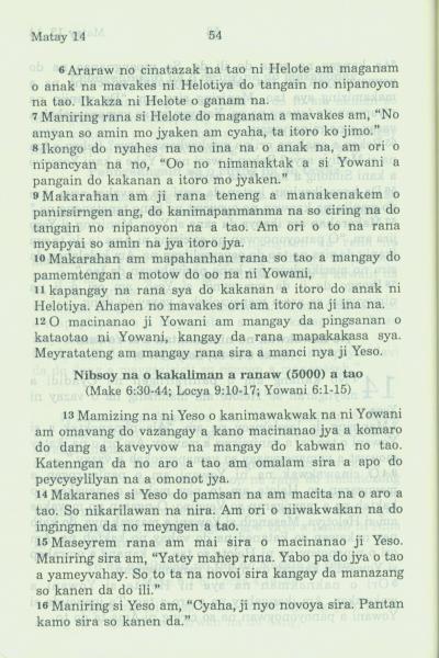 1994年新約全書 馬太福音 14 章 6 節到 14 章 16 節