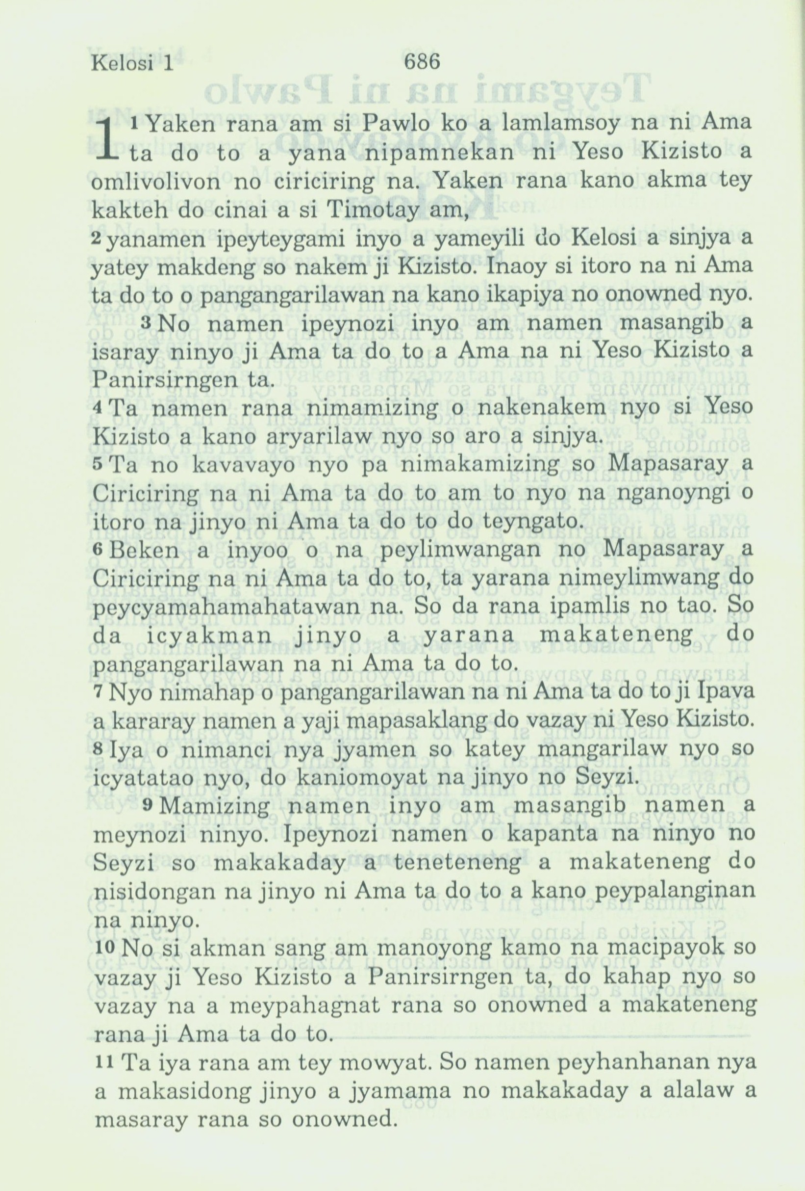 1994年新約全書 歌羅西書 1 章 1 節到 1 章 11 節