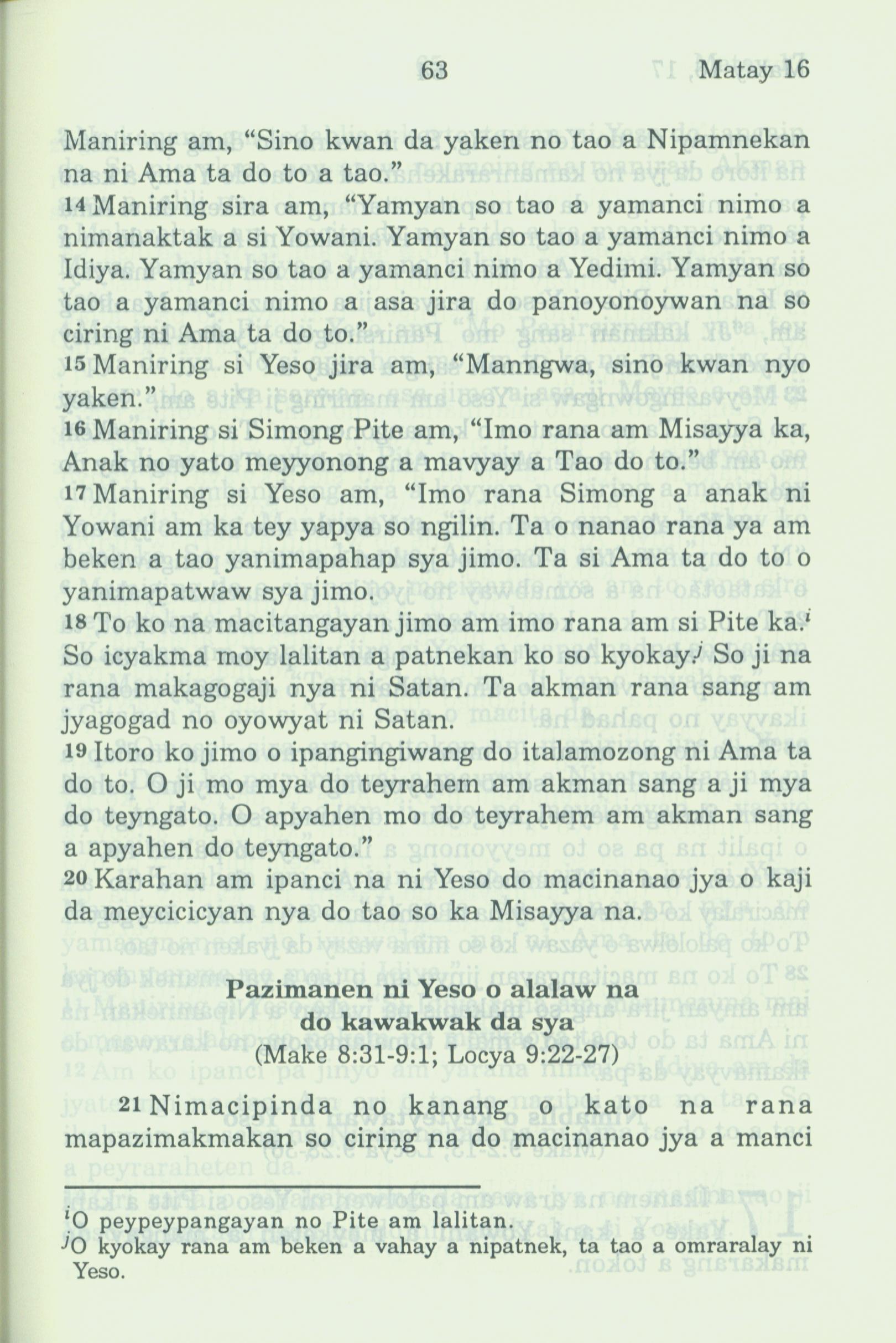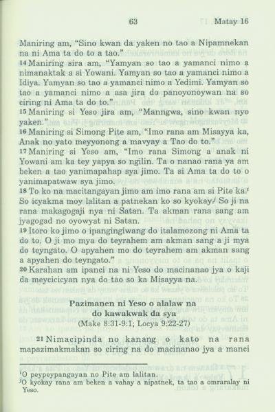 1994年新約全書 馬太福音 16 章 14 節到 16 章 21 節