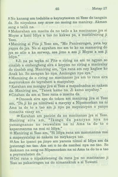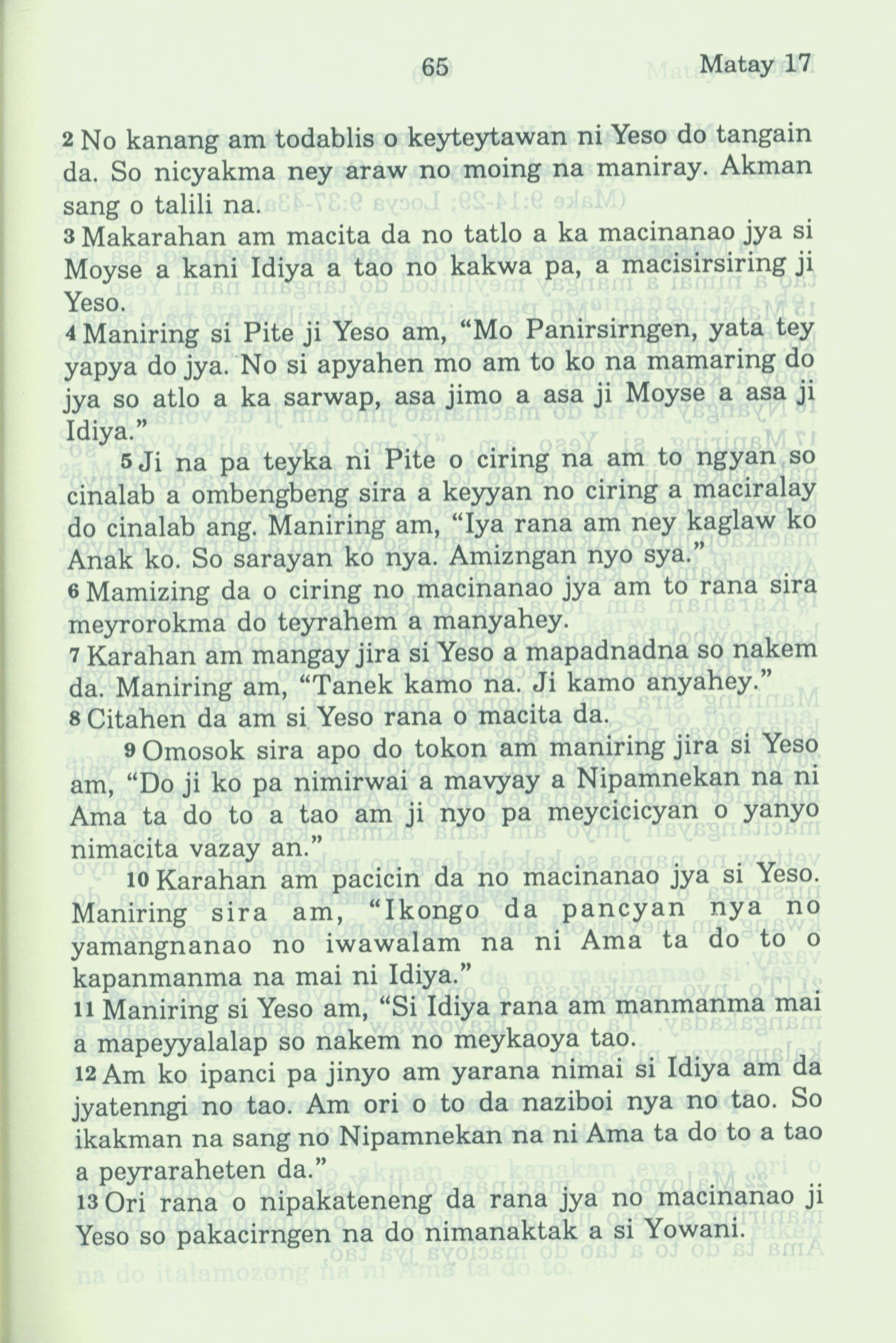 1994年新約全書 馬太福音 17 章 2 節到 17 章 13 節