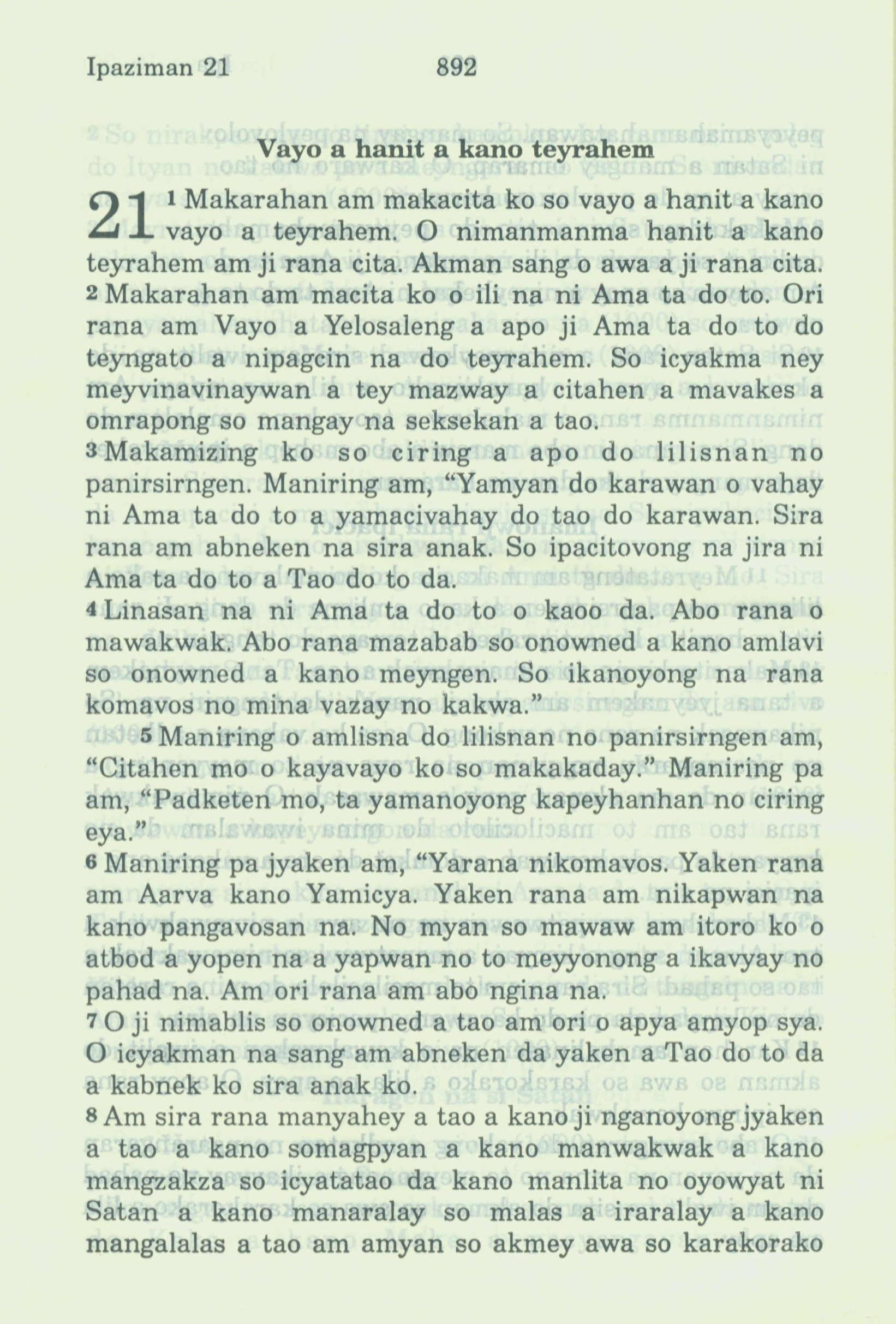 1994年新約全書 啟示錄 21 章 1 節到 21 章 8 節