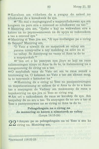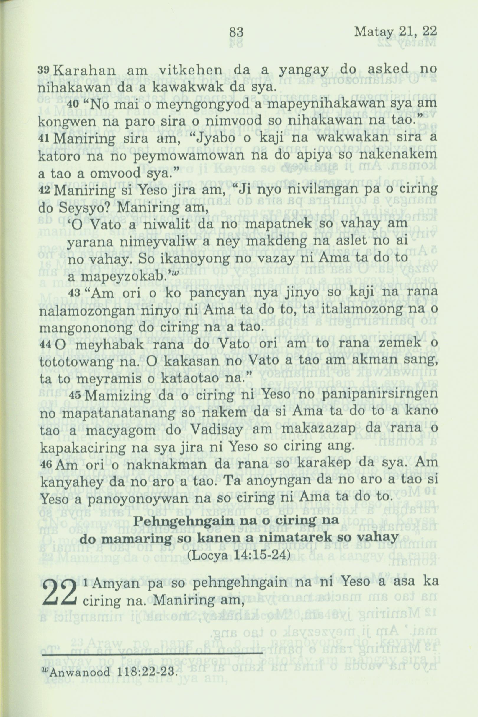 1994年新約全書 馬太福音 21 章 39 節到 22 章 1 節