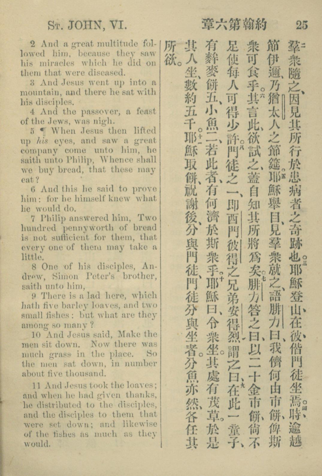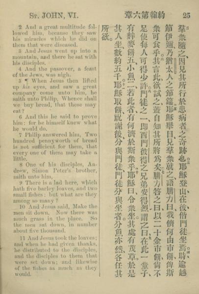 1883年約翰傳福音書 約翰福音 6 章 2 節到 6 章 11 節
