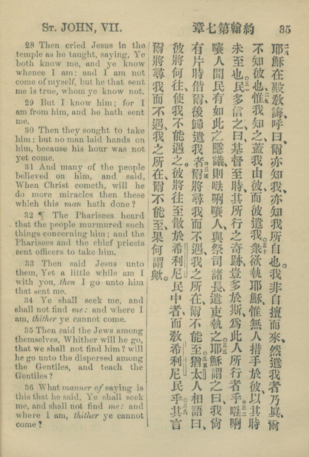 1883年約翰傳福音書 約翰福音 7 章 28 節到 7 章 36 節