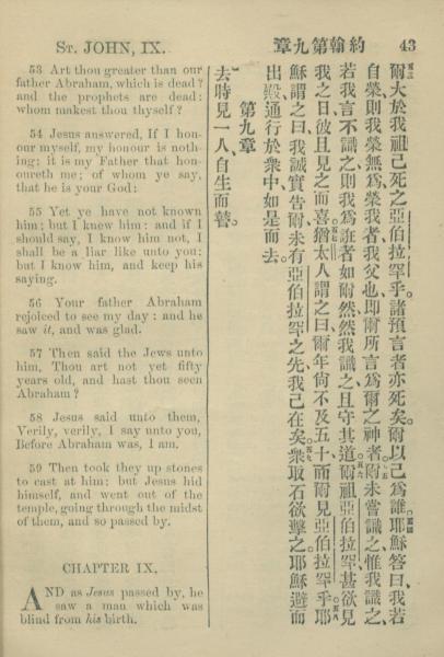 1883年約翰傳福音書 約翰福音 8 章 53 節到 9 章 1 節