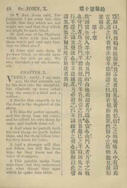 1883年約翰傳福音書 約翰福音 9 章 39 節到 10 章 6 節