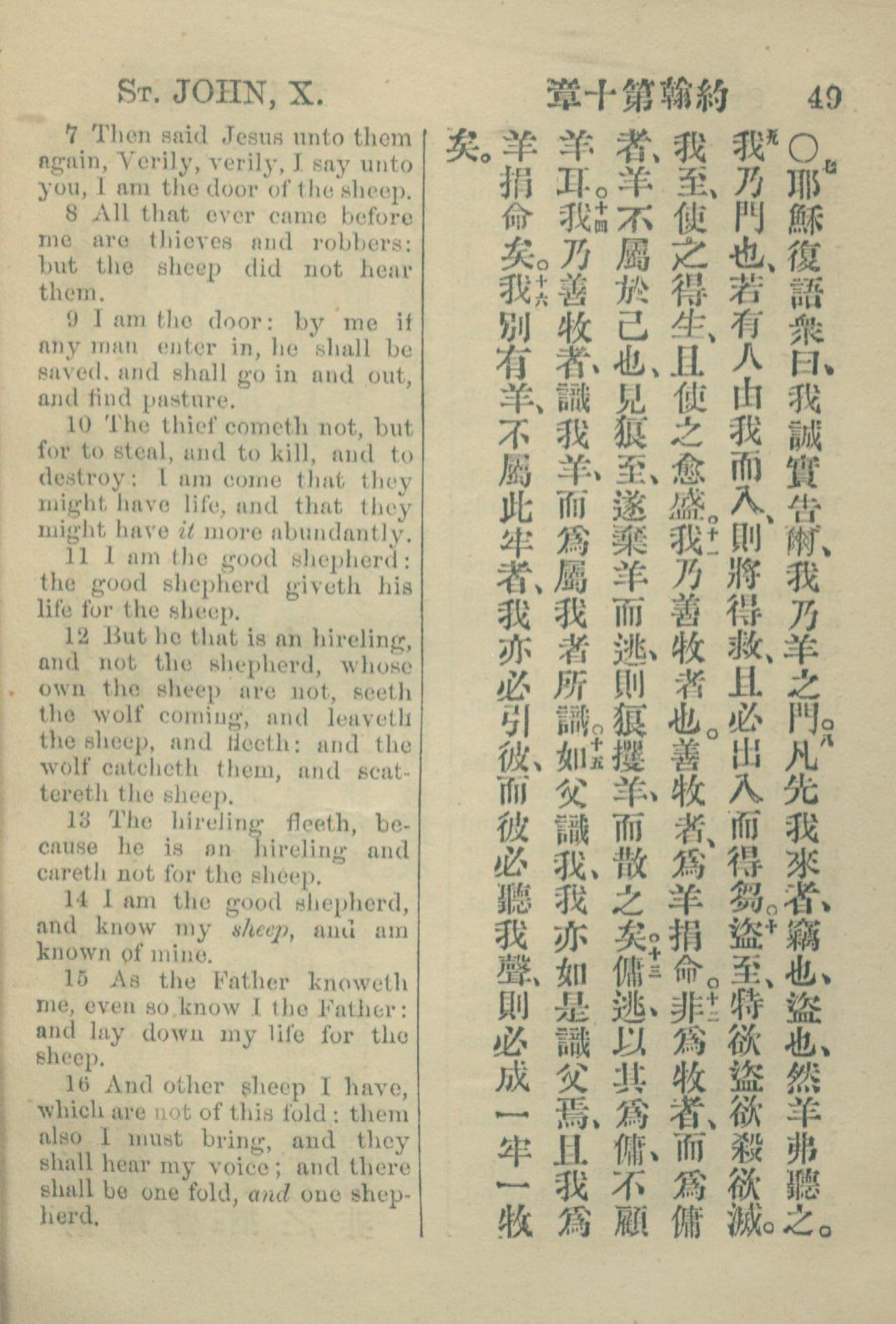 1883年約翰傳福音書 約翰福音 10 章 7 節到 10 章 16 節