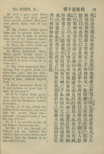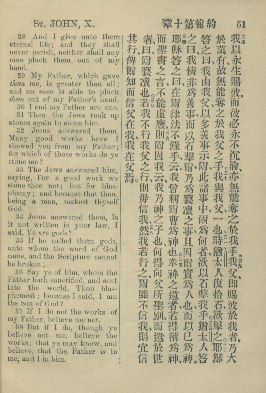 1883年約翰傳福音書 約翰福音 10 章 28 節到 10 章 38 節