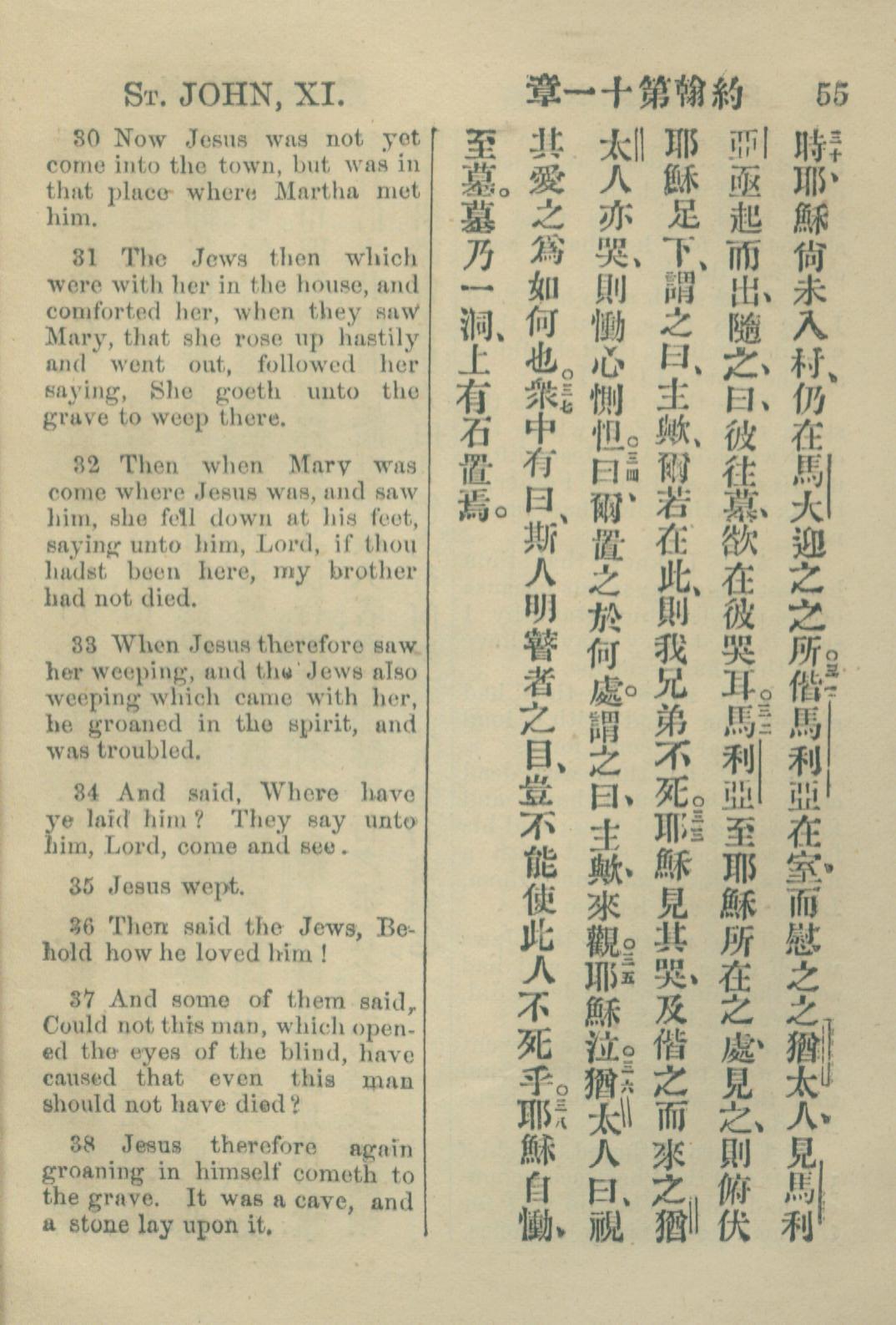 1883年約翰傳福音書 約翰福音 11 章 30 節到 11 章 38 節