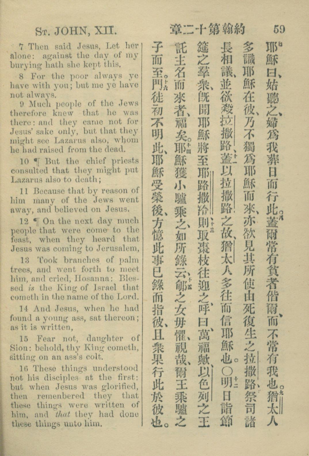 1883年約翰傳福音書 約翰福音 12 章 7 節到 12 章 16 節
