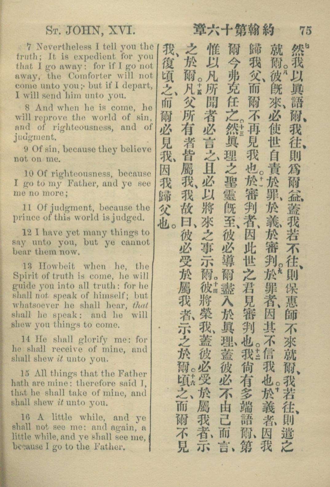 1883年約翰傳福音書 約翰福音 16 章 7 節到 16 章 16 節