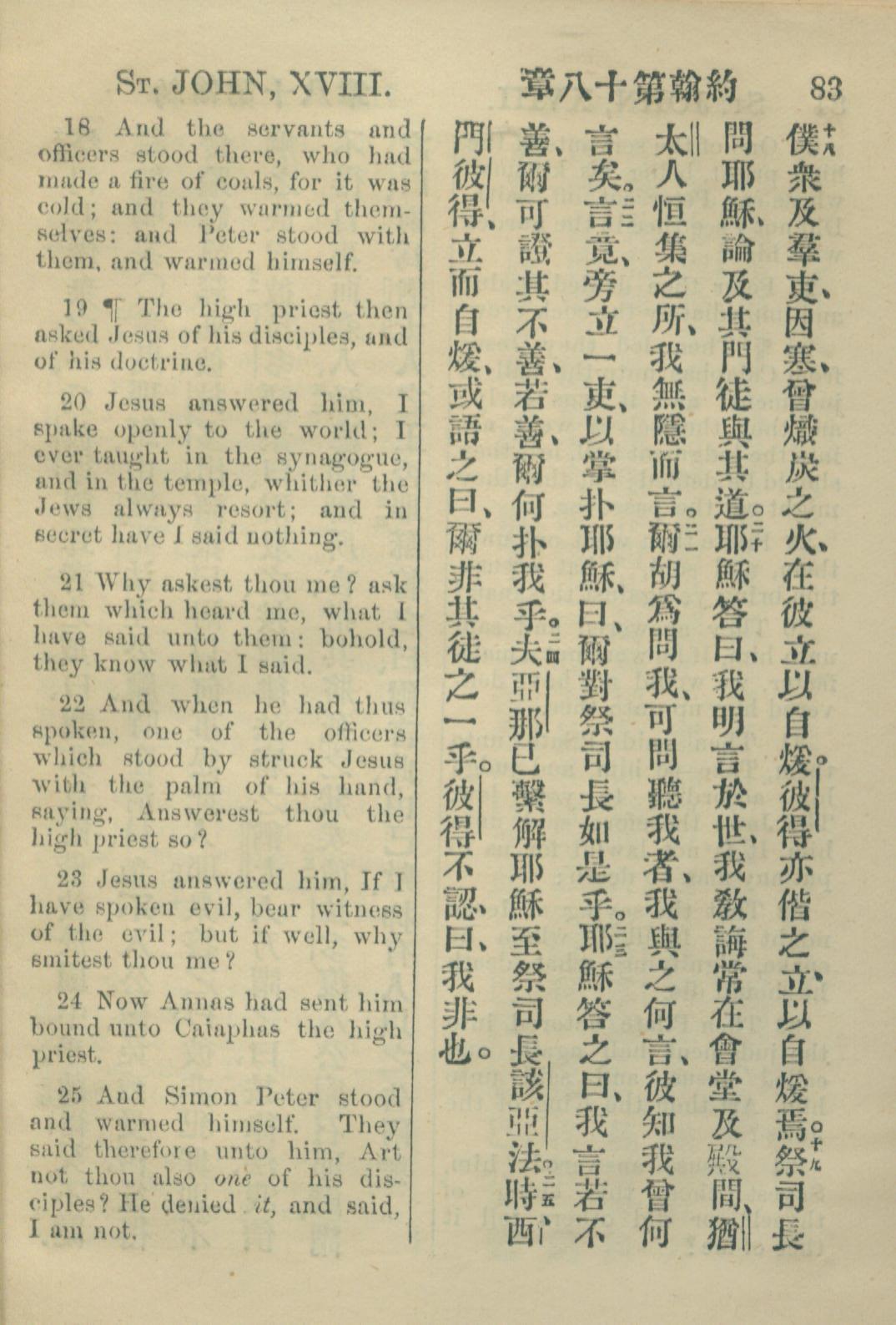 1883年約翰傳福音書 約翰福音 18 章 18 節到 18 章 25 節