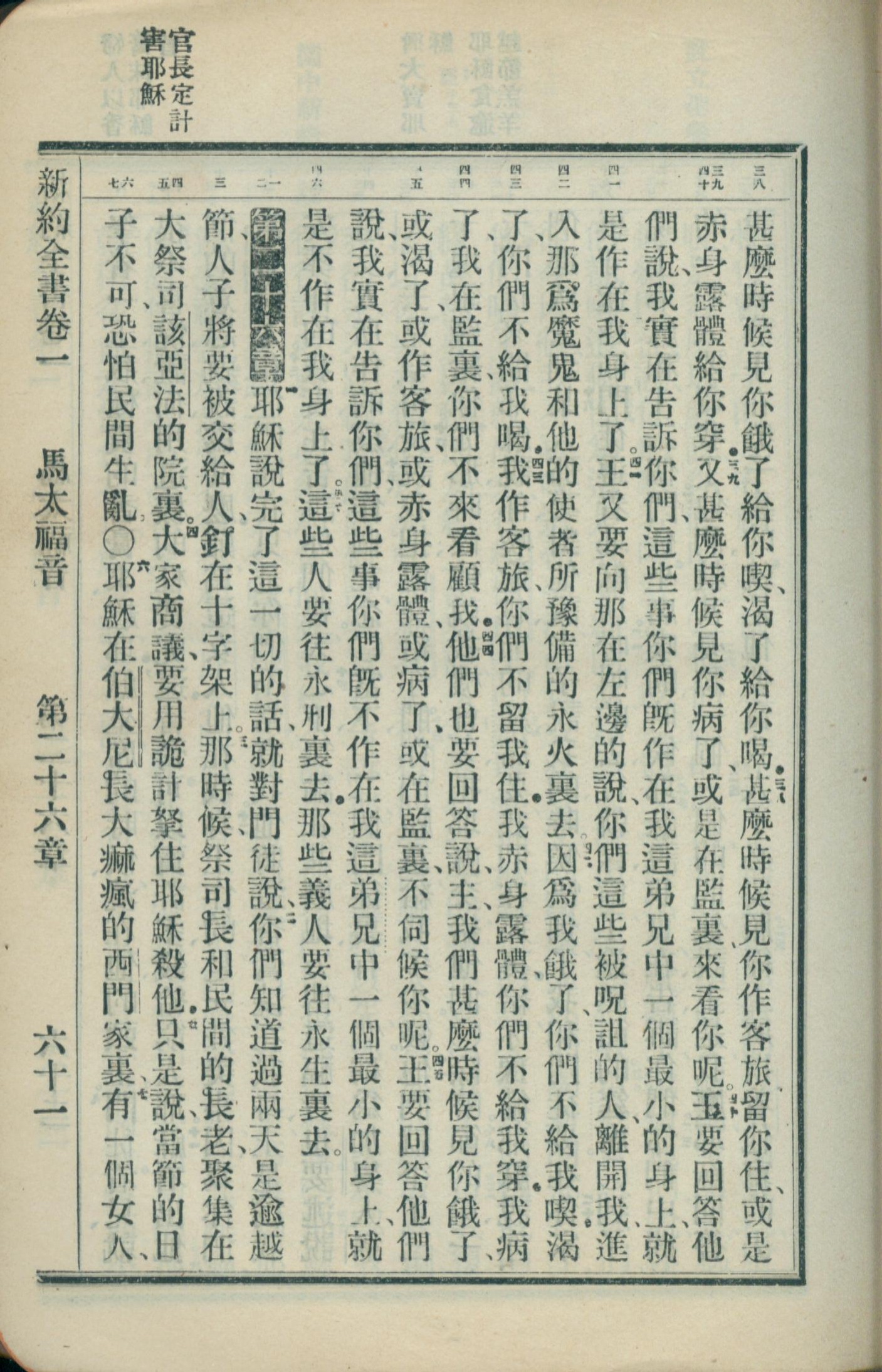 1908年新約全書(官話和合本) 馬太福音 25 章 38 節到 26 章 7 節