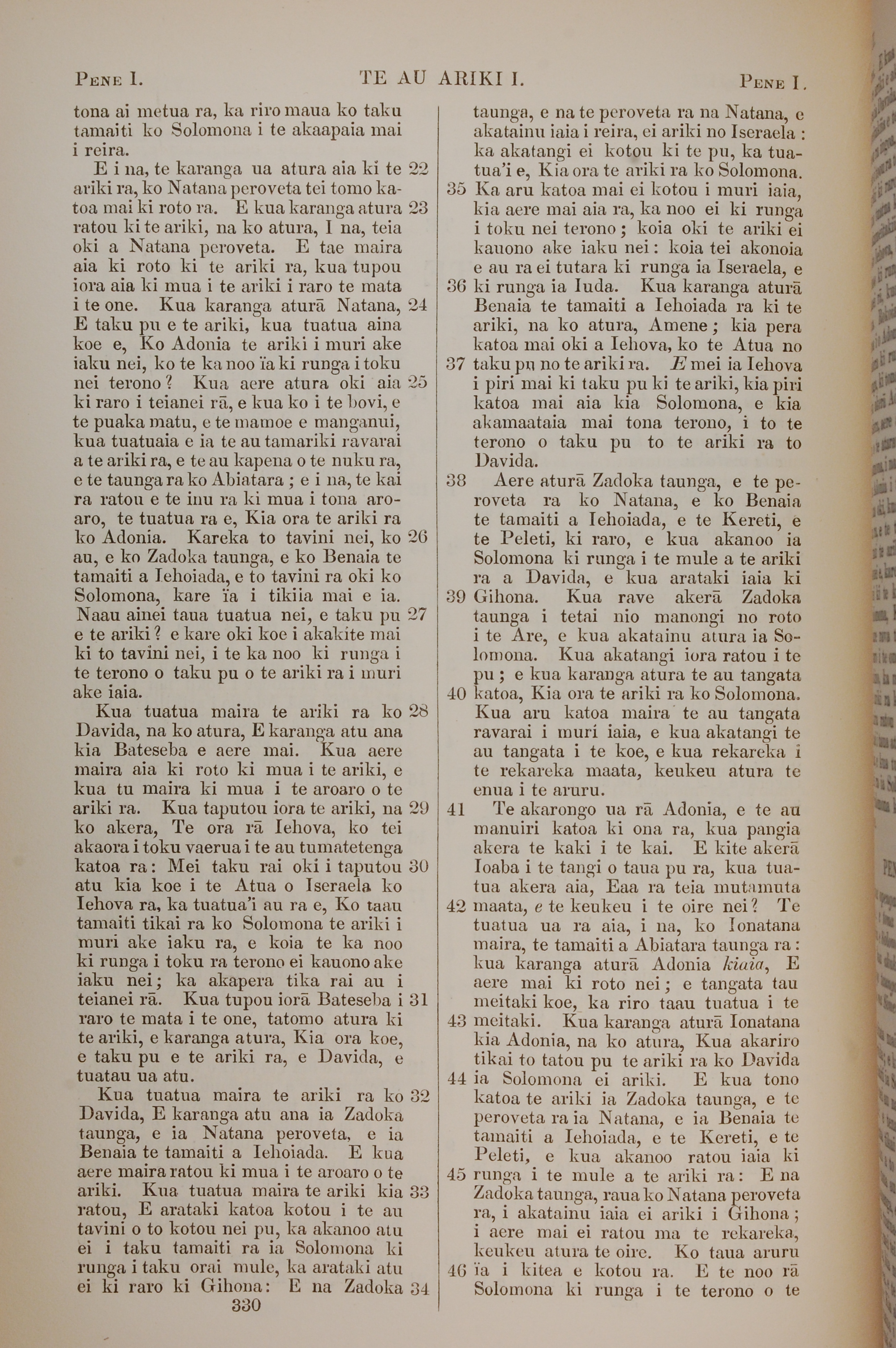 1851年BIBILA TAPU RA 列王紀上 1 章 22 節到 1 章 46 節