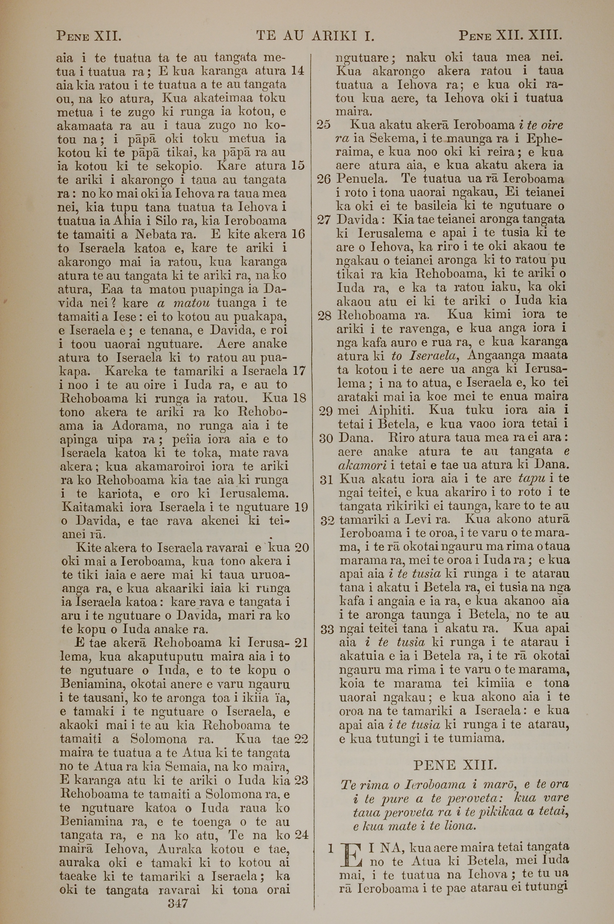 1851年BIBILA TAPU RA 列王紀上 12 章 14 節到 13 章 1 節